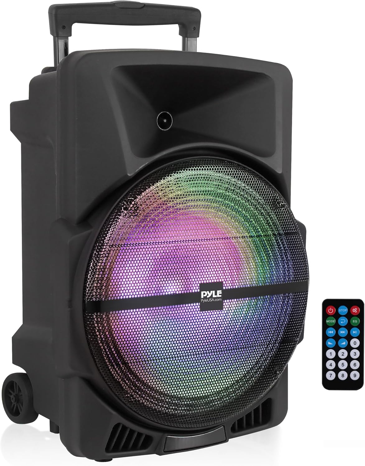 PYLE Sistema de Altavoces, PA, 1200W, Bluetooth, Portátil, Recargable, Inside, Exterior, Subwoofer de 12″, Tweeter de 1″, Grabación, Micrófono, Luces de Fiesta, Radio USB/SD, Negro