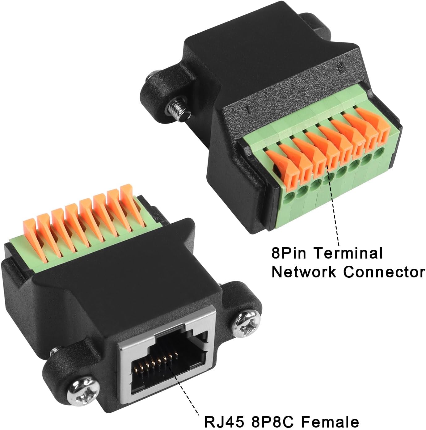 PERSONALIZABLE: conector de montaje sin soldadura de extensión de crimson RJ45 a 8 pines. Puerto de cableado abierto, puede definir libremente la función del pin. No importa EIA/TIA o T568A/B.