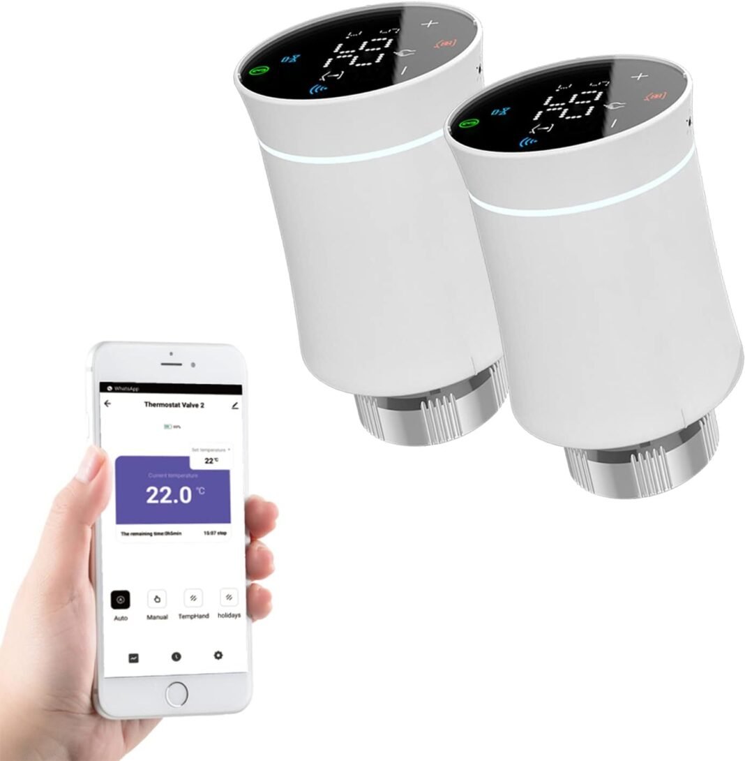 Baterías: 2x 1,5 V LR6/mignon/AA (sin incluir baterías) Rango de temperatura: 5-30 ℃ Pantalla: LED Dimensiones máximas radiadas (ancho x alto x profundidad): 52 * 53 * 85 mm Peso: 190 g Temperatura de trabajo: -10 ℃ – 40 ℃ Entorno de trabajo: Inside Seguridad: CE/ROH Frecuencia: 2,4 GHz Grado de protección: Ip20 Duración de la batería: 1,0 años