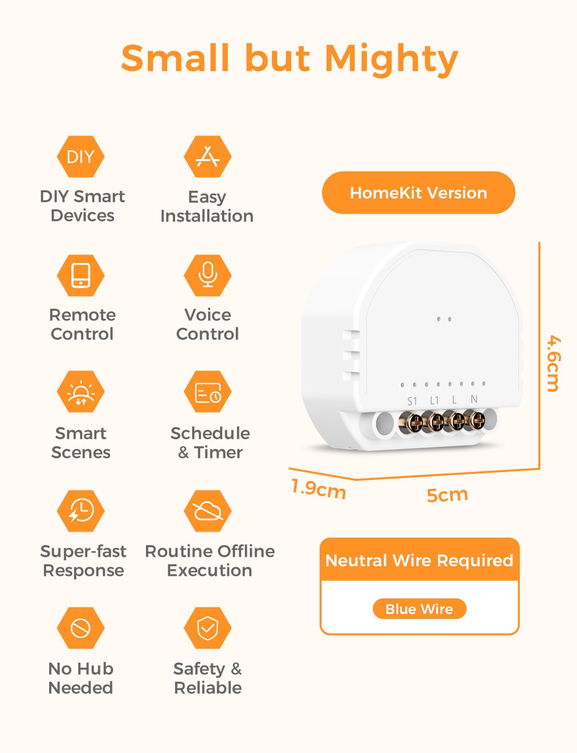 【Tamamo Pequeño, Fácil Instalación】 El interruptor Inteligente Wifi Tiene Un tamaño de 5,0 x 4,6 x 1,9 centímetro, y se pude Instalar fácilmento en Menos de 10 Minutos Sin Necesidad de Habilidadades téclasclas Complejas. (No se requiene el HUB, PERO SE REQUIERE UN CABLE NEUTRO para la Instalacia). ESTE interruptor de aparato ES Suitable Conferentes Tipos de Interruptores Unipolares. (Solo Puede Controlar Una Vía, El interruptor de los dos vías no hay funciones).