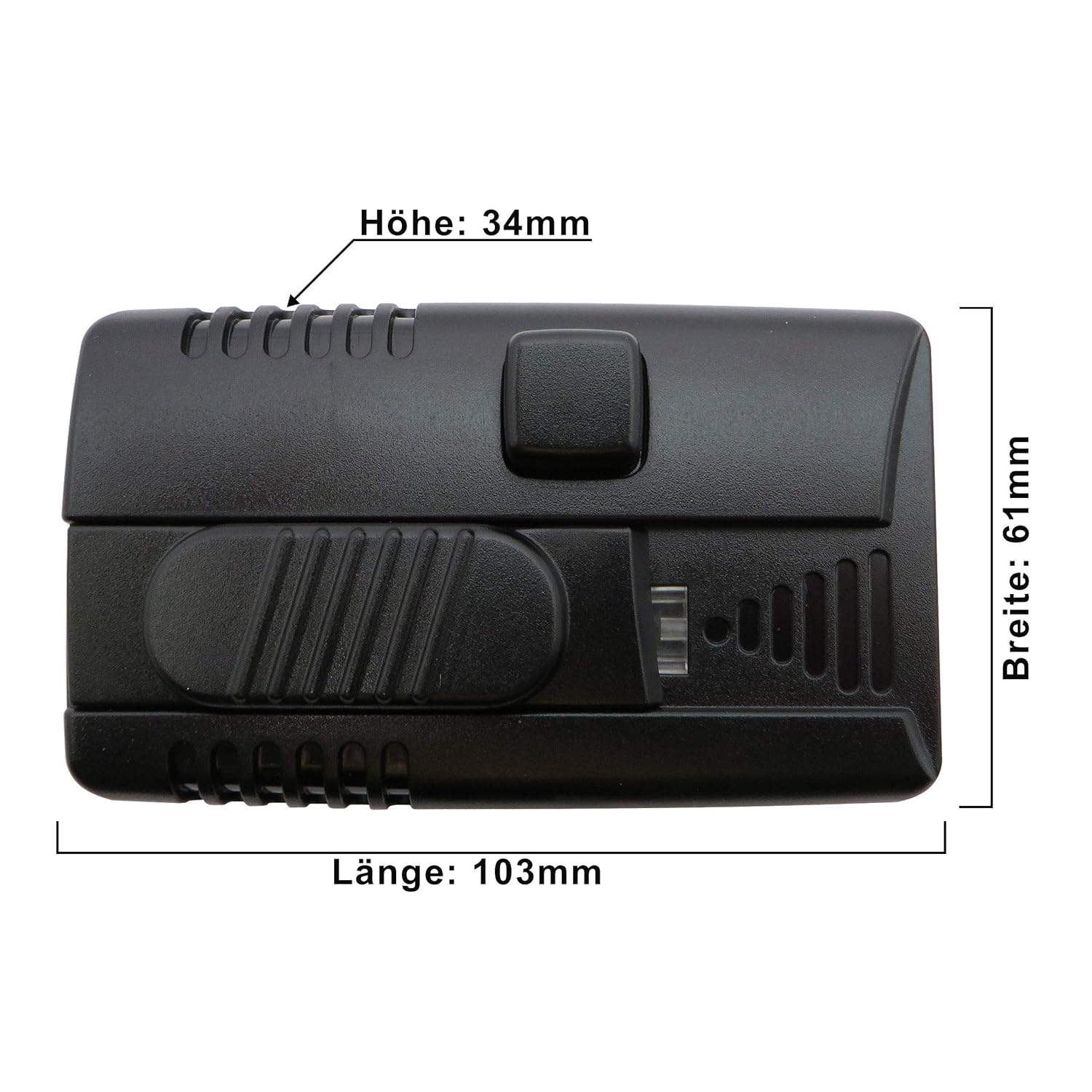 Tamaño: (ver imagen): 103 x 60 x 30 mm (largo x ancho x alto).