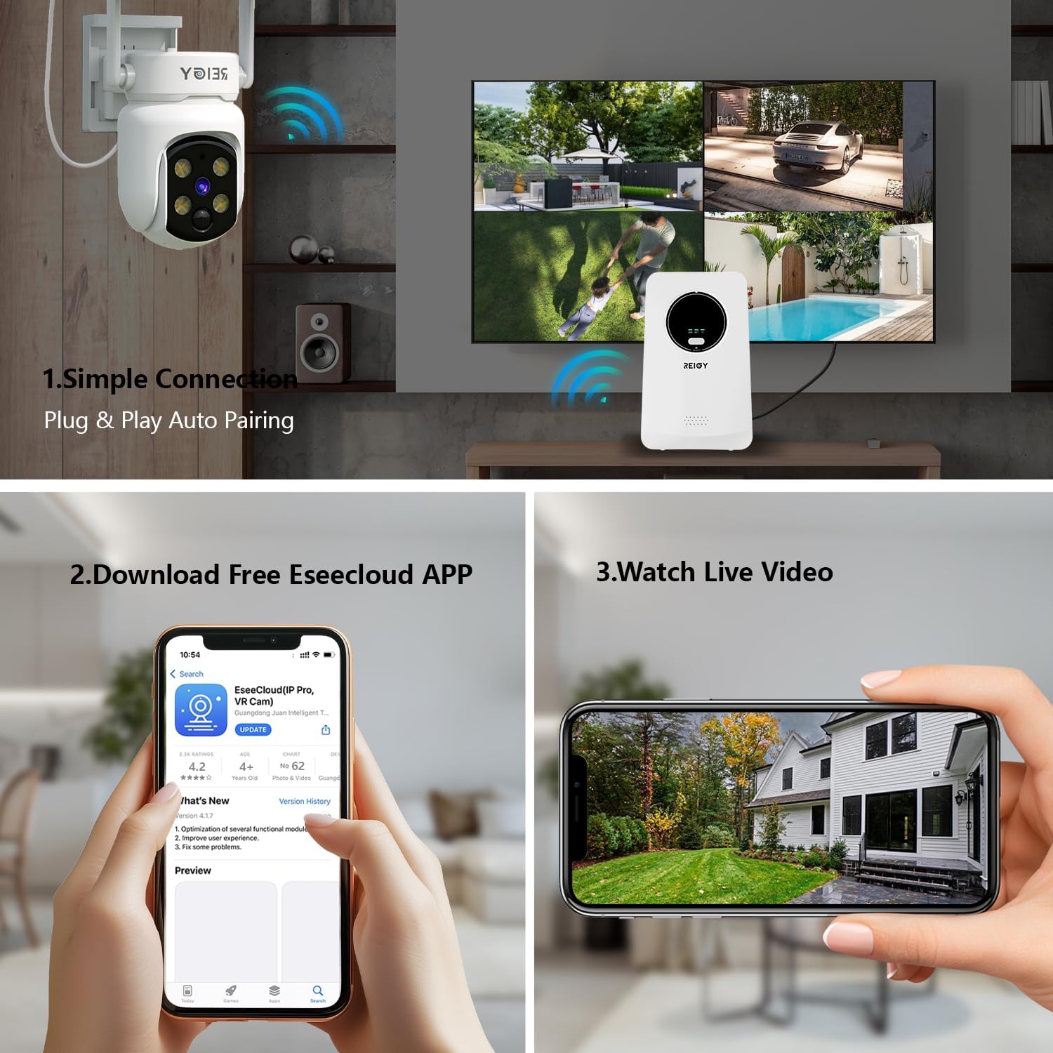 【Imagen en coloration 2K/4MP y vista de 360°】La cámara photo voltaic utiliza el sensor de coloration 1/3CMOS más avanzado y una lente óptica avanzada de 4MP. Ofrece una vista panorámica de 360°, lo que permite una rotación horizontal de 350° y una rotación vertical de 90° para cubrir un área más grande. No importa dónde estés, te da una sensación de autenticidad.
