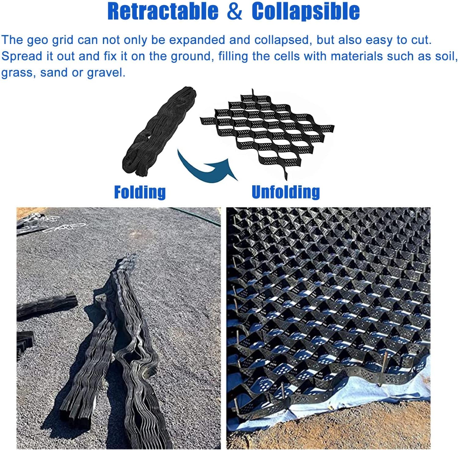 Alta capacidad de carga: la resistencia a la tracción después del llenado es de 1800 libras por metro cuadrado, mejorando la capacidad de carga en carretera distribuyendo uniformemente el peso. Los pavimentadores con tecnología de soldadura ultrasónica no se hunden en el suelo bajo cargas pesadas, asegurando durabilidad y estabilidad para tus proyectos. Perfecto para aplicaciones de construcción y paisajismo.