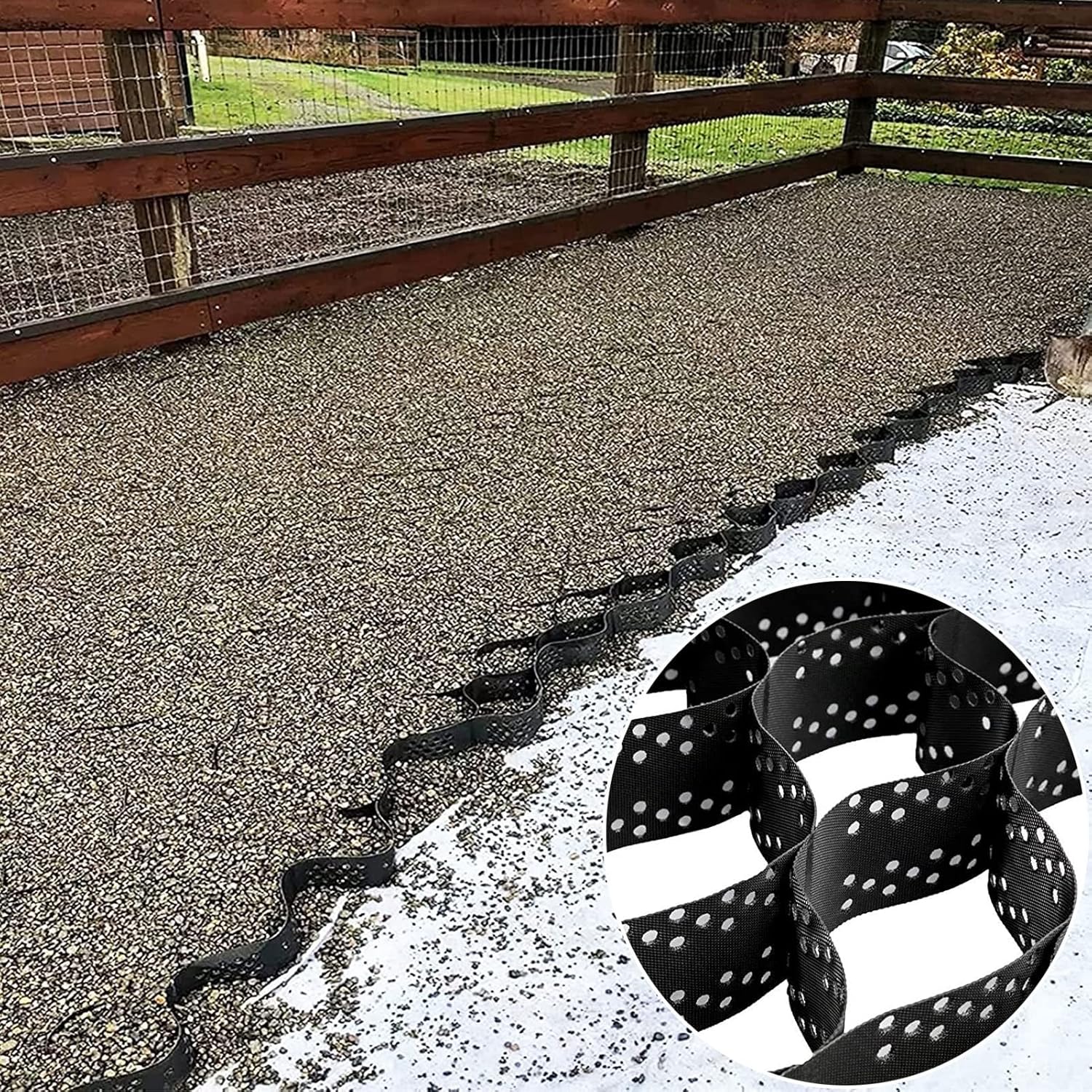 Uso versátil: nuestras rejillas de grava son ideales para la instalación en pendientes o áreas planas. Perfecto para mejorar jardines, caminos, estacionamientos, patios y patios de granja. Estas rejillas proporcionan estabilidad para calzadas, recintos de caballos y más, asegurando una solución duradera y estética para varios proyectos al aire libre.