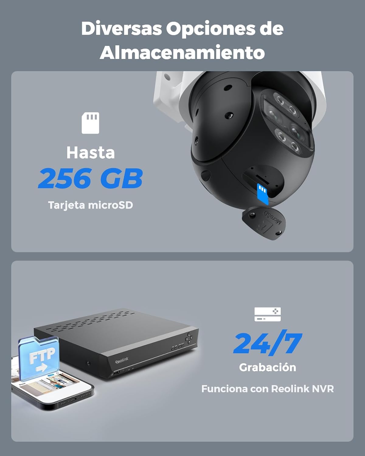 Choices de Almacenamiento Flexibles: La Camara CCTV Admite una tarjeta micro Sd de Hasta 512 GB (sin incluida) y FTP para el Almacenamiento. Adopta la Codificación de Vídeo H.265 de Alta Eficiencia para Ahorrar la Mitad del Ando de Banda y El Espacio de Almacenamiento