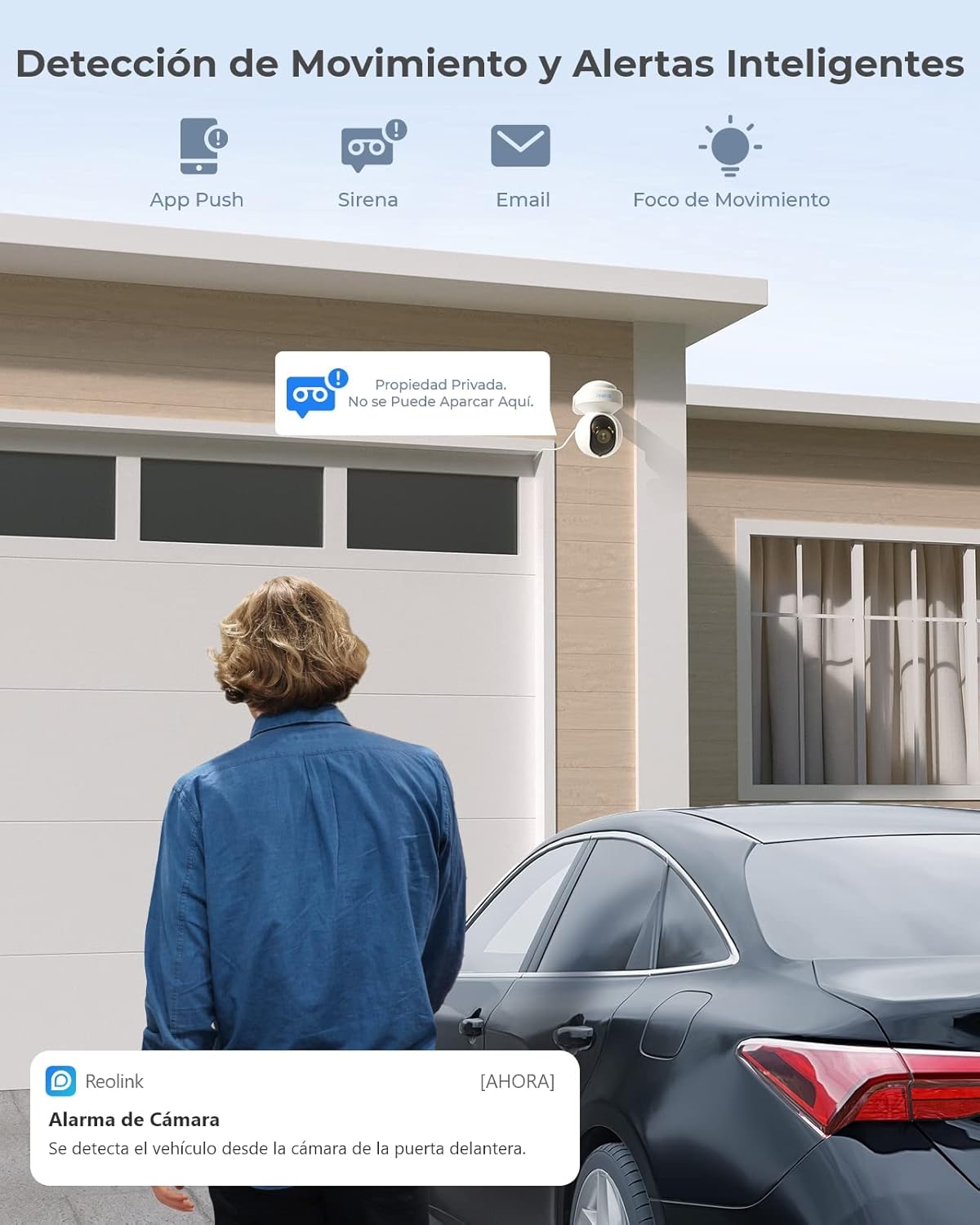 Deteción de Personas/VehÍculos y Seguimiento Auticó: Con la Deteción de MoviNo Inteligente Avanzada, Esta Camara Vigilancia Wifi Exterior 360 Puede Detectar Personas y Vehículos de Ootros Objetos. Puede Recibir Notificaciones más especies y Saber al Instante que Activa las alertas Mirando la Pantalla de Su Teléfono. Al Mismo Tiempo, Puede Seguir Auticamete a la Persona/Automóvil en Movimiento, Le ofRece más