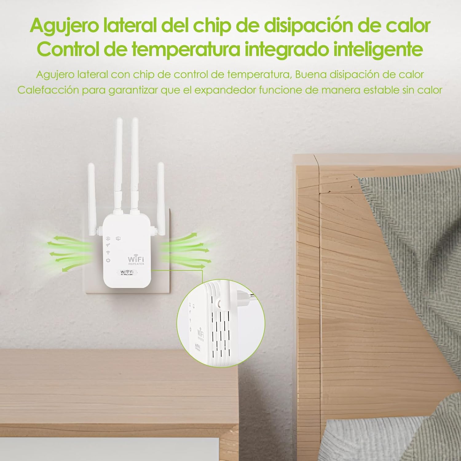 【Eficaz Cobertura WiFi】El repetidor WiFi está equipado con 4 antenas y 2 puertos LAN. Ligero pero potente, fácil de colocar y no ocupa mucho espacio, le permite ver la transmisión en vivo, cocinar recetas y jugar juegos en la habitación de su balcón. Despídete de los puntos ciegos Wi-Fi.