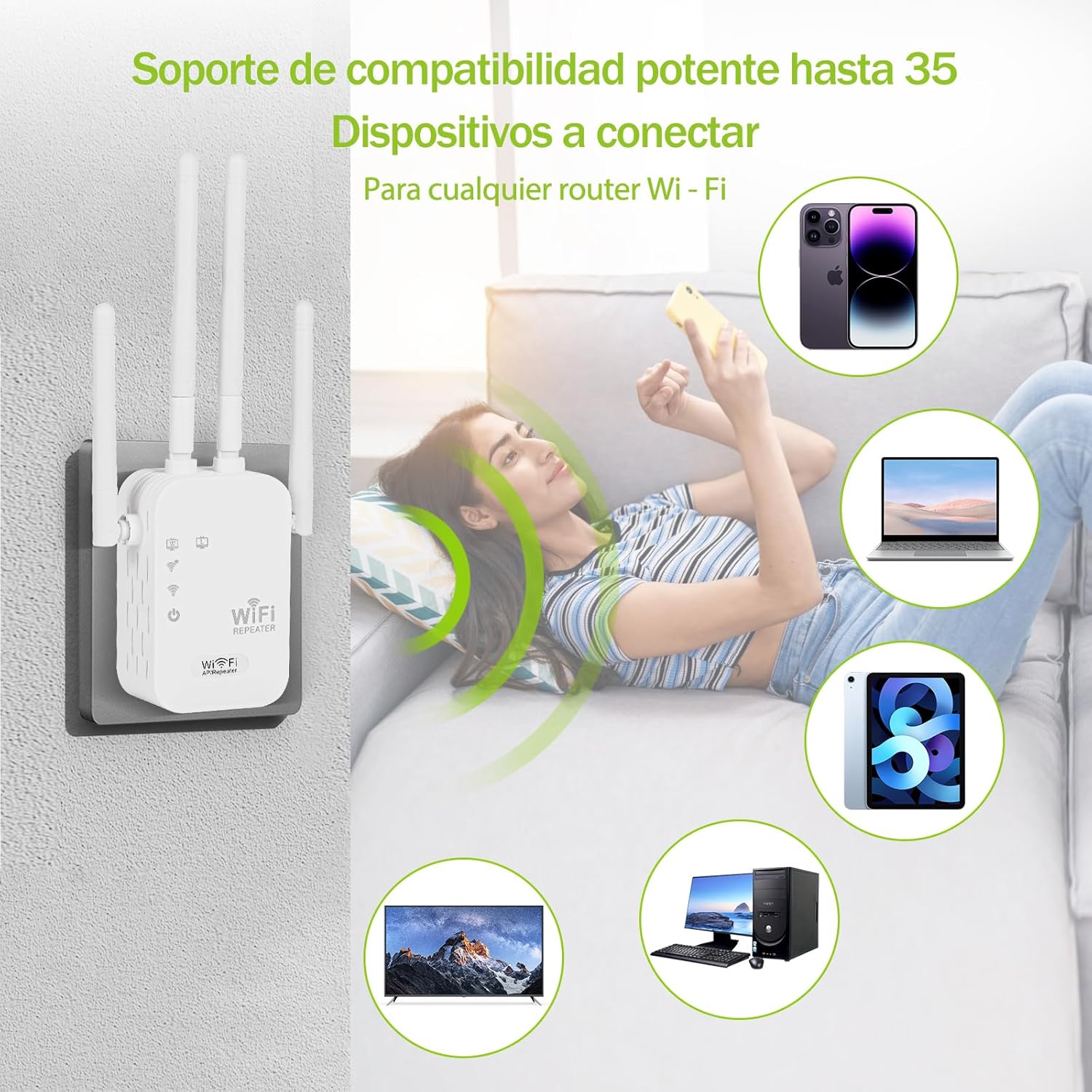 【Extender la cobertura Wi-Fi】 Aumente la cobertura de Web Wi-Fi de su hogar hasta 1500 metros cuadrados y conecte hasta 30 dispositivos como ordenadores portátiles, smartphones, altavoces, cámaras IP, tabletas, dispositivos IoT y mucho más.