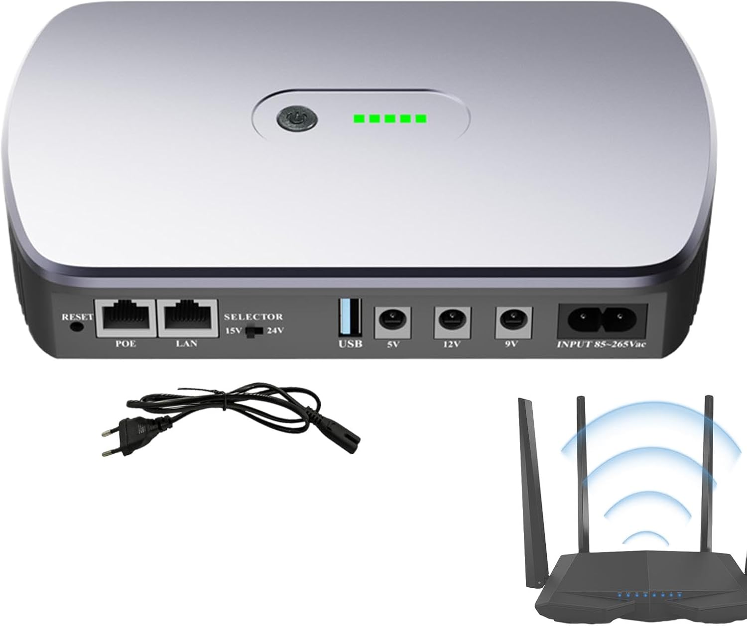 respaldo de batería de UPS, fuente de alimentación de batería de respaldo,Fuente de alimentación para módem de 8800 mAh con POE – UPS compacto para módem enrutador de cámara, corriente estable y segur