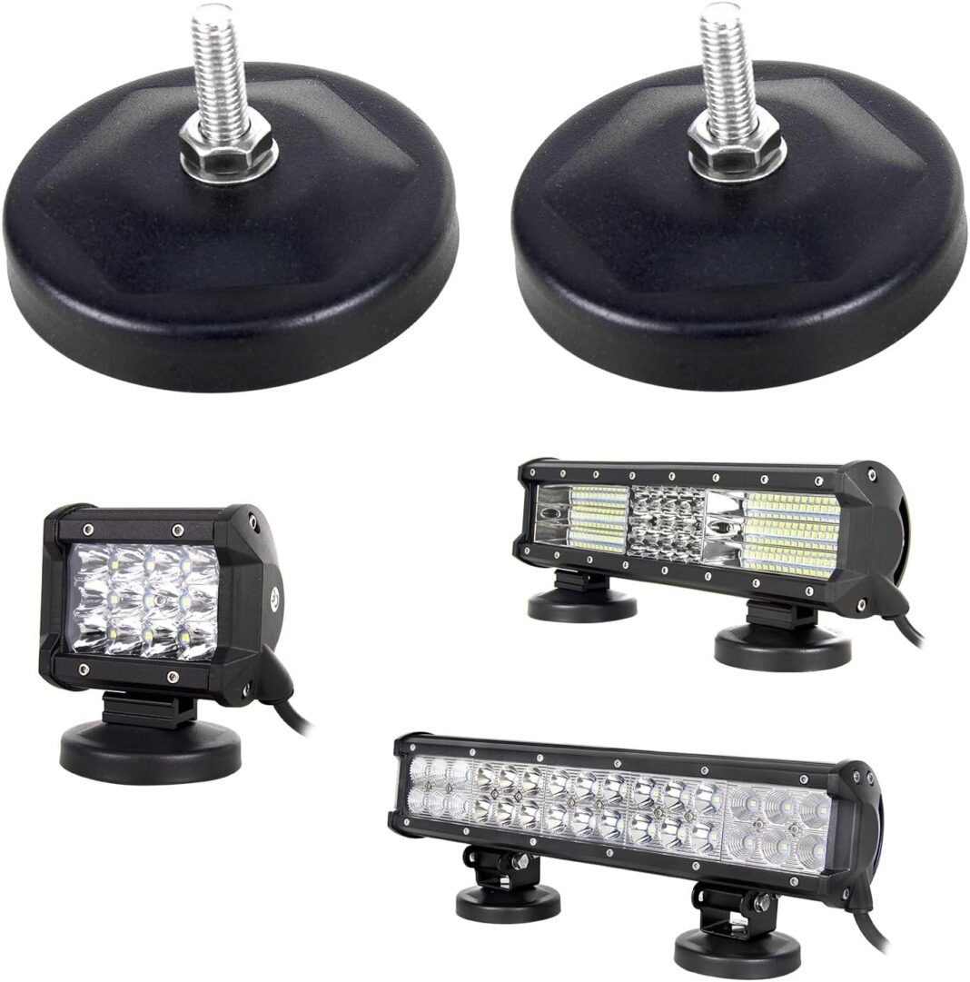 2 piezas Soportes de montaje de base magnética para barra de luces LED, soporte de montaje potente Sucker Soporte de techo para Off Highway 4×4 Carro del carro Luz de trabajo curva recta