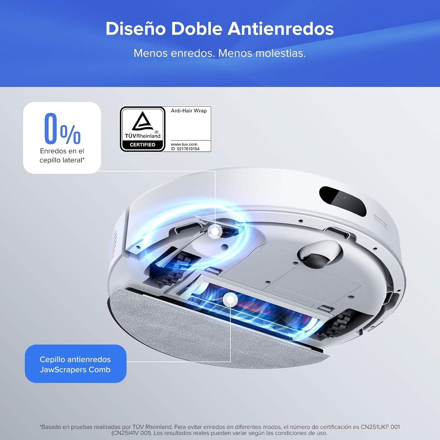 Navegación LiDAR precisa: el escaneo LiDAR de 360° mapea su hogar de forma rápida y precisa, hasta 6 veces más rápido que los métodos estándar. Almacene hasta 3 mapas de pisos para una limpieza eficiente en varios niveles y una planificación de rutas óptima.