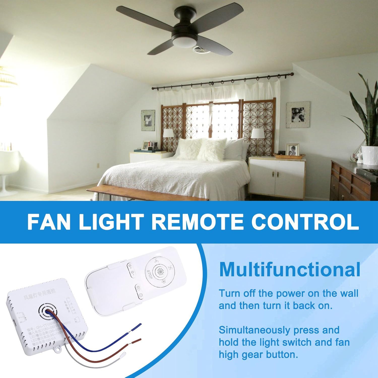 en cuenta: este controlador solo es adecuado para luces de ventilador de dormitorio y no es adecuado para luces de ventilador de techo con aspas retráctiles.