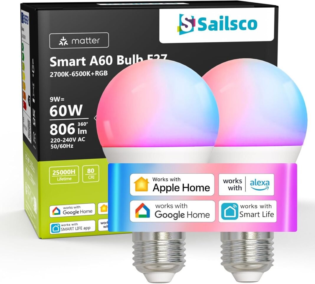 【Potente «Matter»】- La bombilla Sailsco Matter Alexa E27 es appropriate con todas las plataformas Matter. Puedes controlar todos tus dispositivos domésticos inteligentes con una sola aplicación certificada. Matter sin tener que descargar aplicaciones adicionales. Escanea el código QR Matter para emparejar la bombilla Alexa E27 y simplemente añádela a tus aplicaciones certificadas Matter o Sensible Life APP