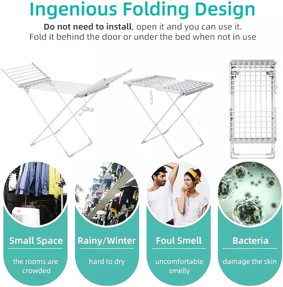La rejilla de secado con calefacción tiene un controlador de temperatura inteligente de 45-55 ℃, con 20 tubos de calor, calor uniforme, protege la ropa/sin daños, sin ruido, la secadora con calefacción se puede plegar suavemente, es liviana/fácil de almacenar, con pequeños artículos con artículos pequeños, con artículos pequeños con artículos pequeños, con artículos pequeños con artículos pequeños, con artículos pequeños con artículos pequeños, con artículos pequeños con artículos pequeños. Accesorios Belries, para que puedas colgar fácilmente calcetines y ropa inside