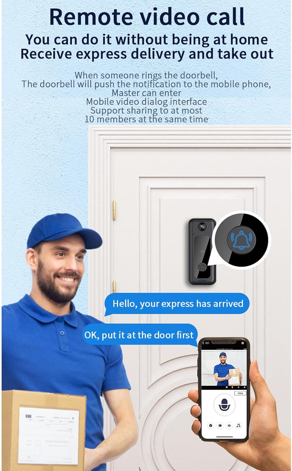 Monitoreo remoto en tiempo actual: Equipado con una función de Monitoreo remoto en tiempo actual, lo que le permita monitorear fácilmento la situaciónón en su puerta desde Cualquier Lugar.
