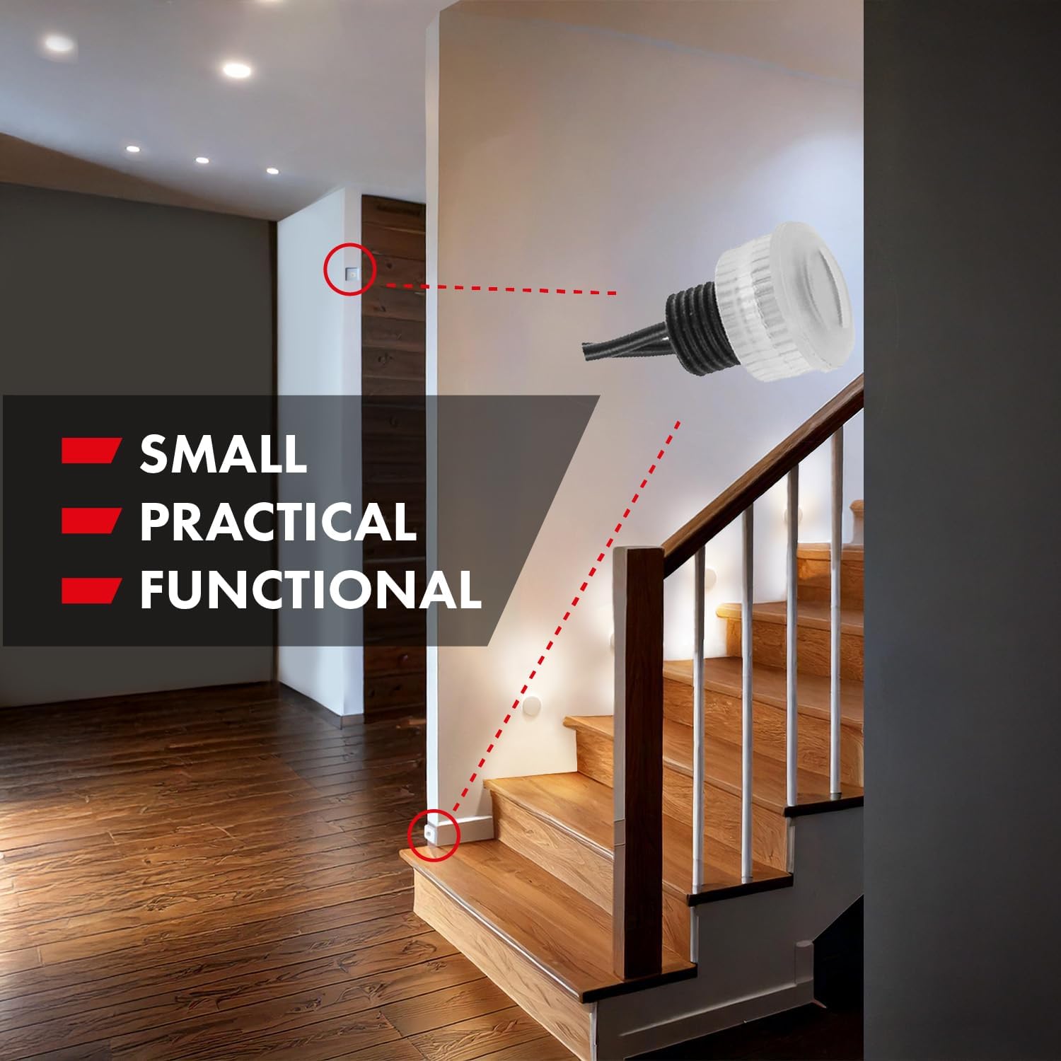 La carcasa compacta y el cable versatile permiten una instalación cómoda – Management de intensidad de la luz: < 5-50 lux - Grado de protección: IP54