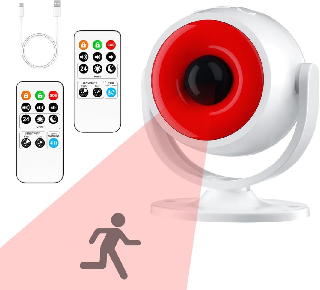 Deteción de Ángulo Amplio: Con una Alarma Activada por Movimiento de 110 ° de Infrarrojos, Nuestro Dispositivo Cubre 25 Pies, Detectando Con Precisiónlo El Movimento para MeJorar La SeguriDad de Tu Hogar O Oficina. Supreme para uso de shade inside una alarma de Movimiento.