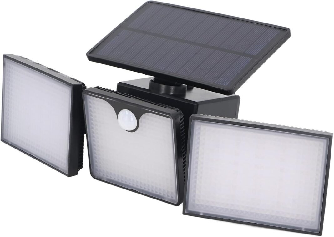 Sensor de Movimiento Luz Photo voltaic para Exteriores con Batería de Litio de 2200 MAhde Detección de Luz Automatizado Management de Brillo Inteligente para Seguridad con 3 Cabezales