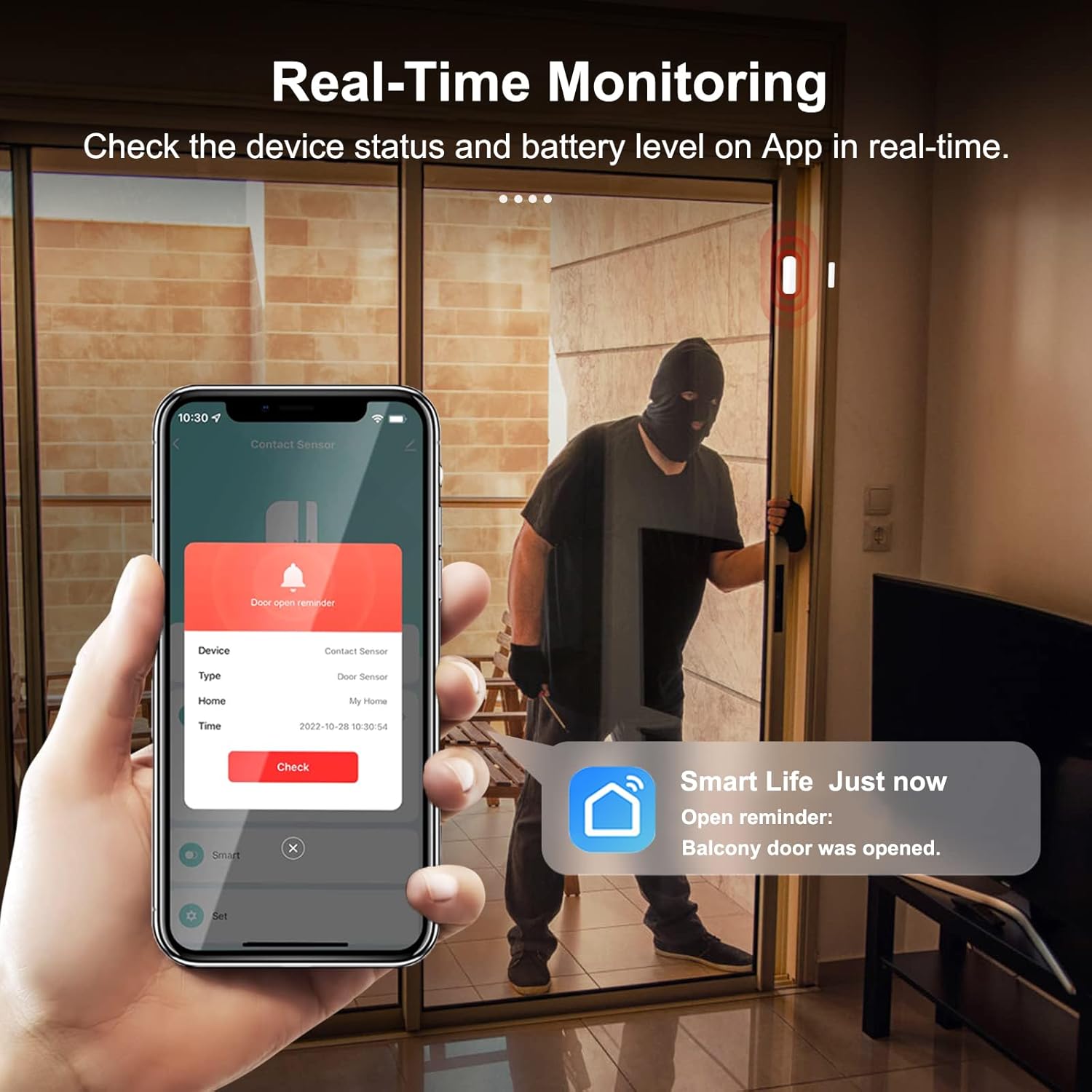 Haga que su puerta o ventana sea más inteligente – cuando salga de casa, le enviará una notificación si las puertas o ventanas se abren o son invadidas por un objeto externo, encontrará anomalías en su hogar de inmediato.