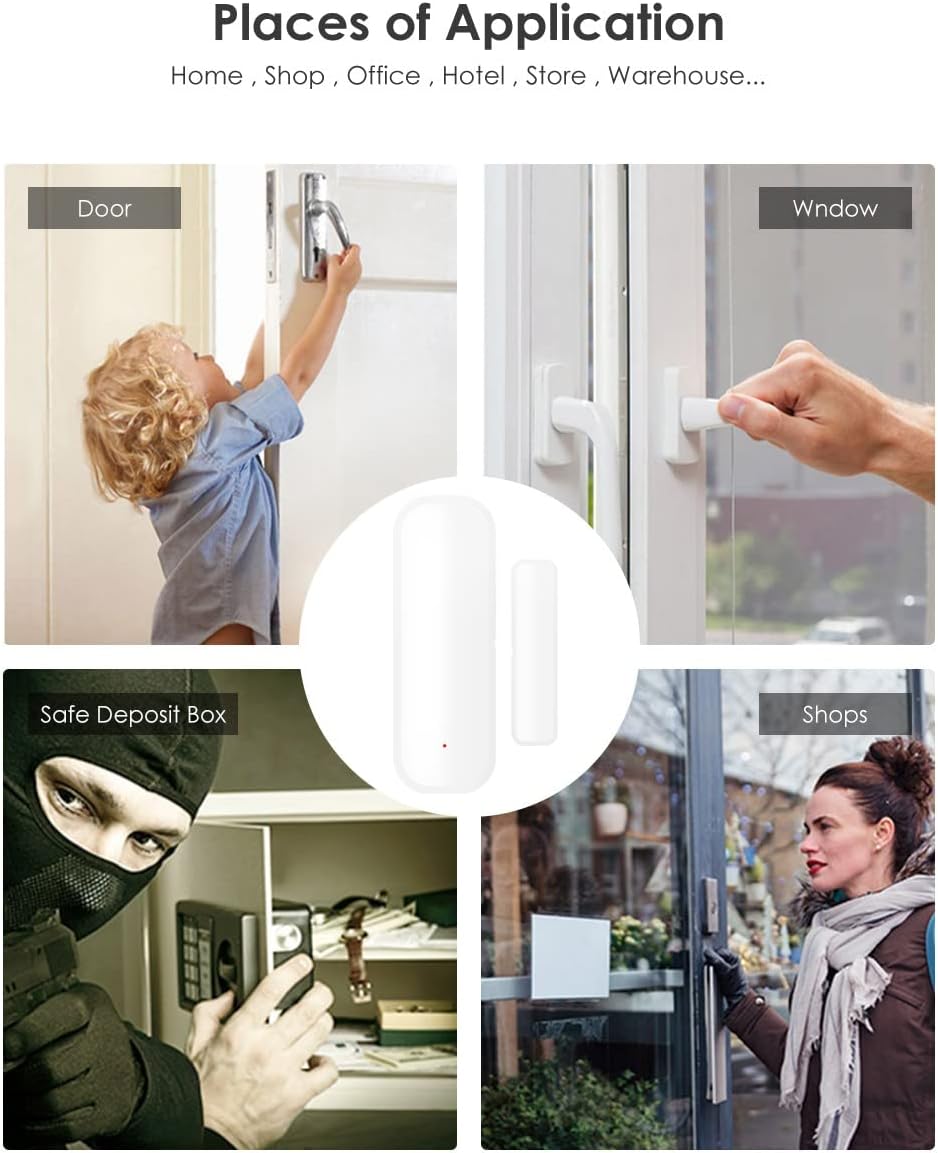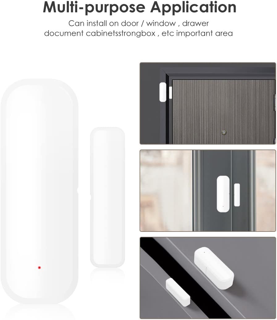 *FÁCIL INSTALACIÓN: no es necesario usar herramientas complicadas durante la instalación, solo use adhesivo para instalarlo, firme y duradero. Los sensores de puerta WiFi se pueden instalar en la puerta de entrada, en la habitación del bebé, en las puertas del garaje, en el techo, en las cajas fuertes, and so on.