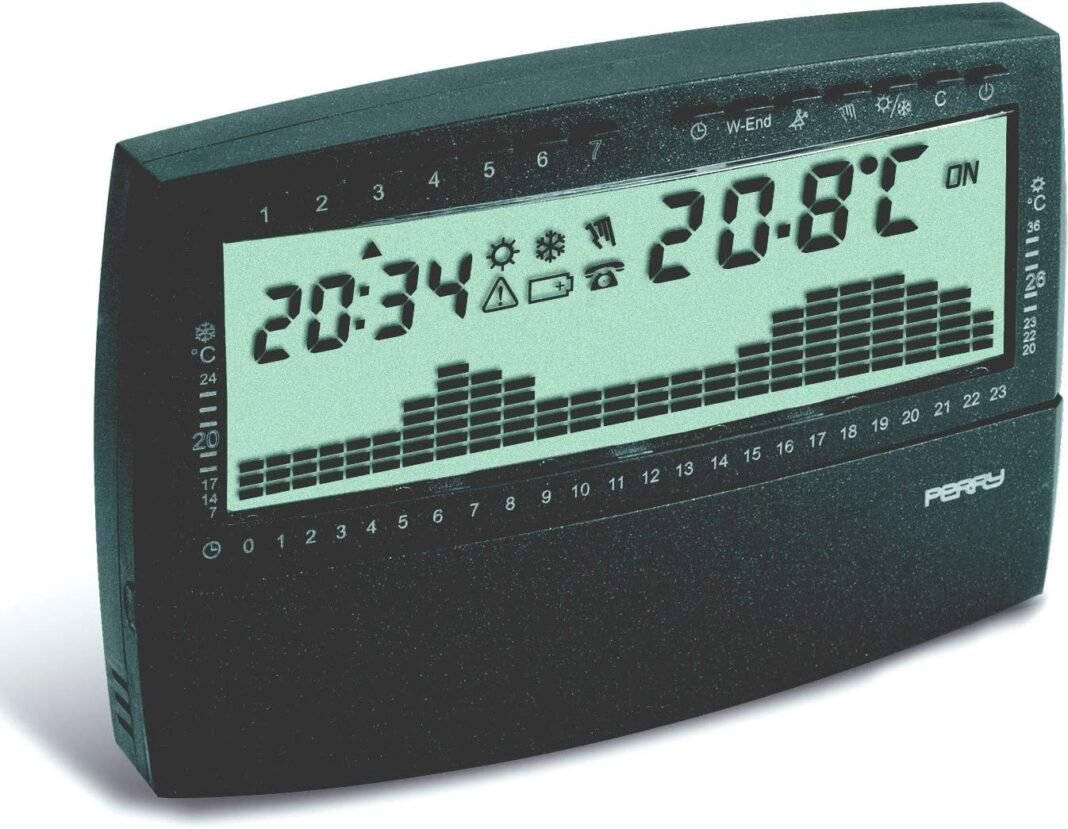 Perry 1CRCR018AS Cronotermostato semanal digital serie UP & DOWN – Alimentación a pilas Colour: antracita. Características: