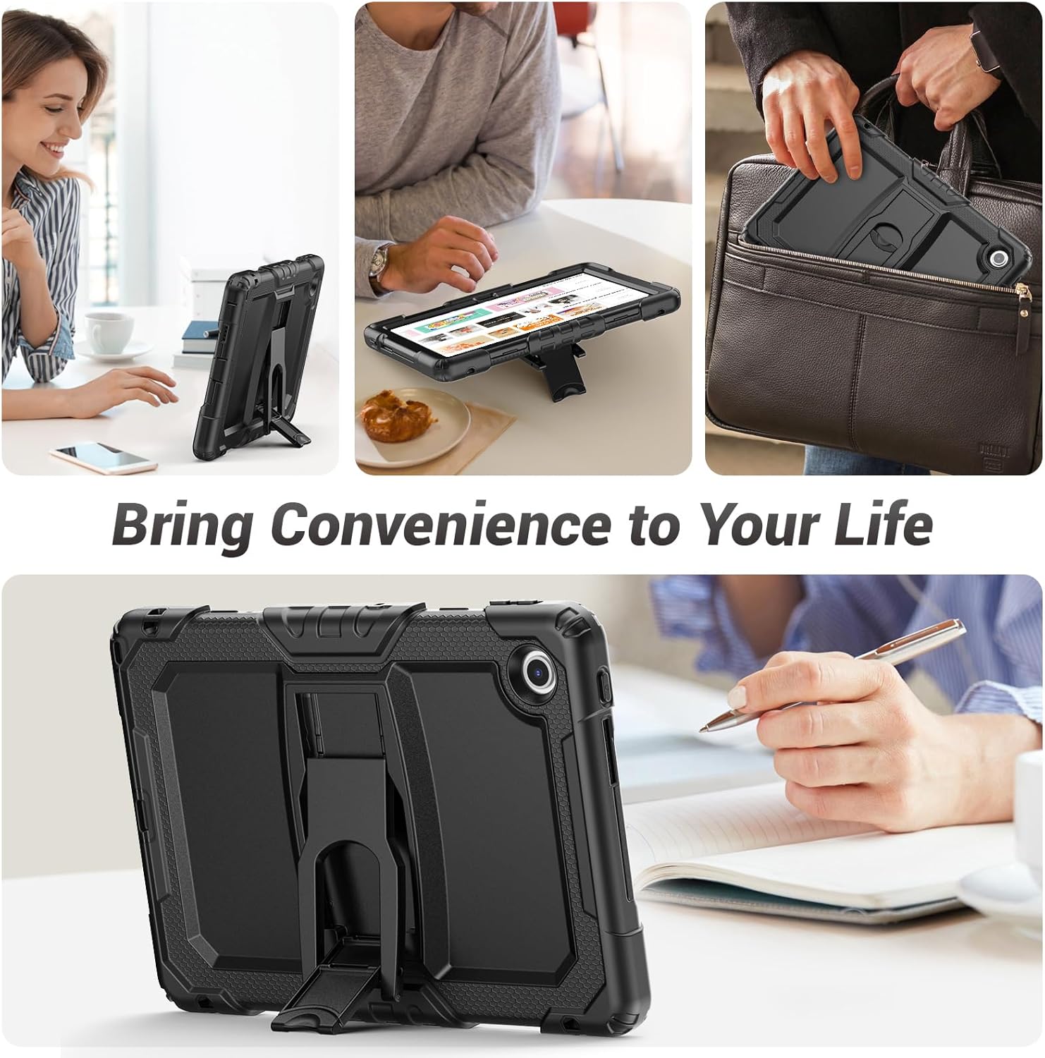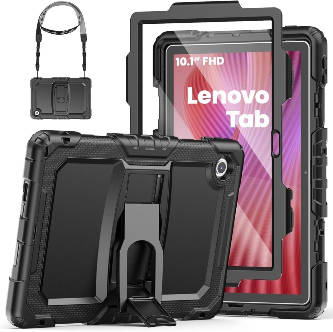 SEYMAC FONDA PARA LENOVO TAB 2025 10.1 Pulgadas (TB-311FU/TB-311XU), Funda Para Lenovo Tab 10.1 2025 A PrueBa de Golpes Contector de Pantalla/Soporte Plegable/Correa para el Hombro, Negro, Negro