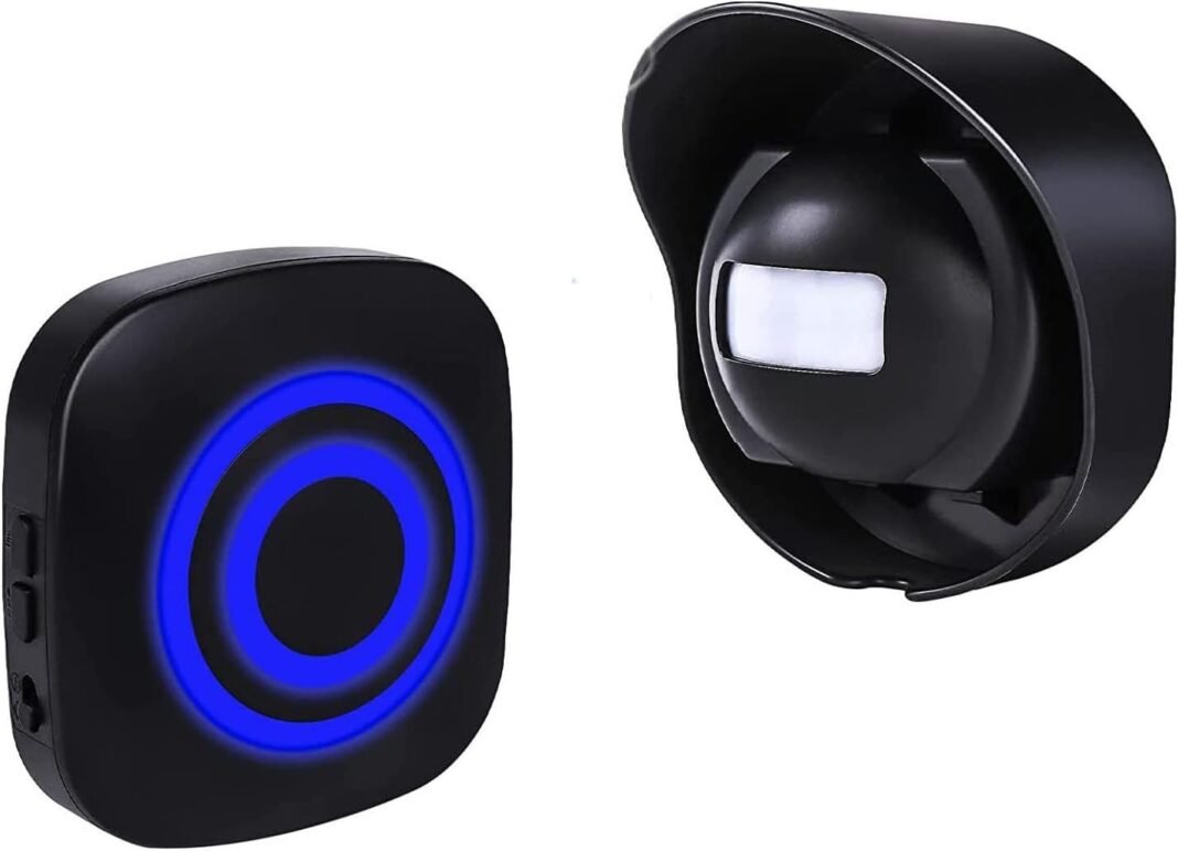 Siegenpro alarma de seguridad timbre de alarma inalámbrico con sensor de MoviMiento piR infrarrojo detector de timbre del sensor alarma para totada del puerta casa tiende y oficina (negros, 1s + 1r)
