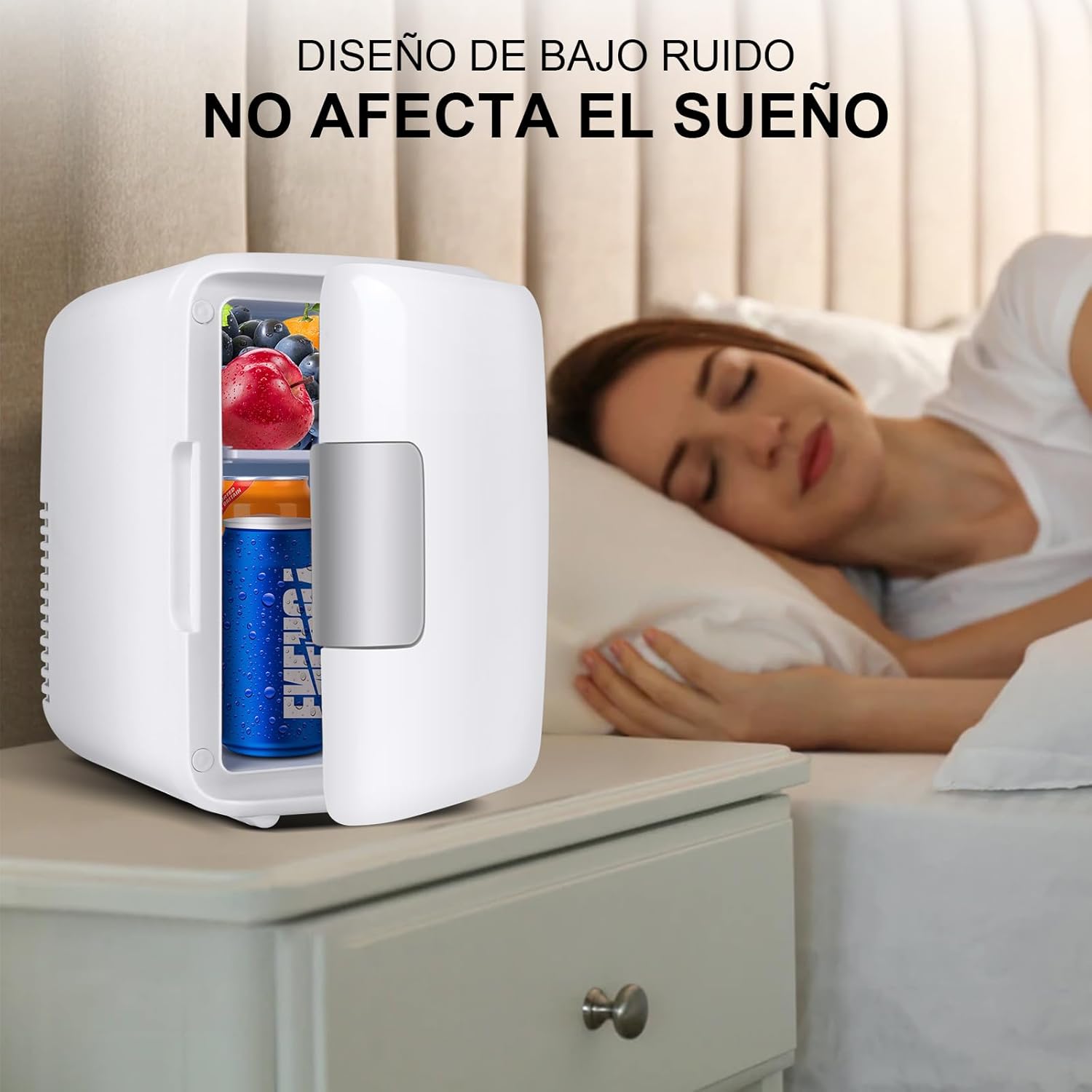【Silenciosa】 El Frigorifico Pequeño para hábitacióa es Silencioso no Alcanza más de 28db de Ruido. Podrás Ubicarlo en la hábitacia de la Casa que mejor tevenga e incluso dejarla en el Baño y Mantener Tus Cremas, Cosméticos y bebidas frías.