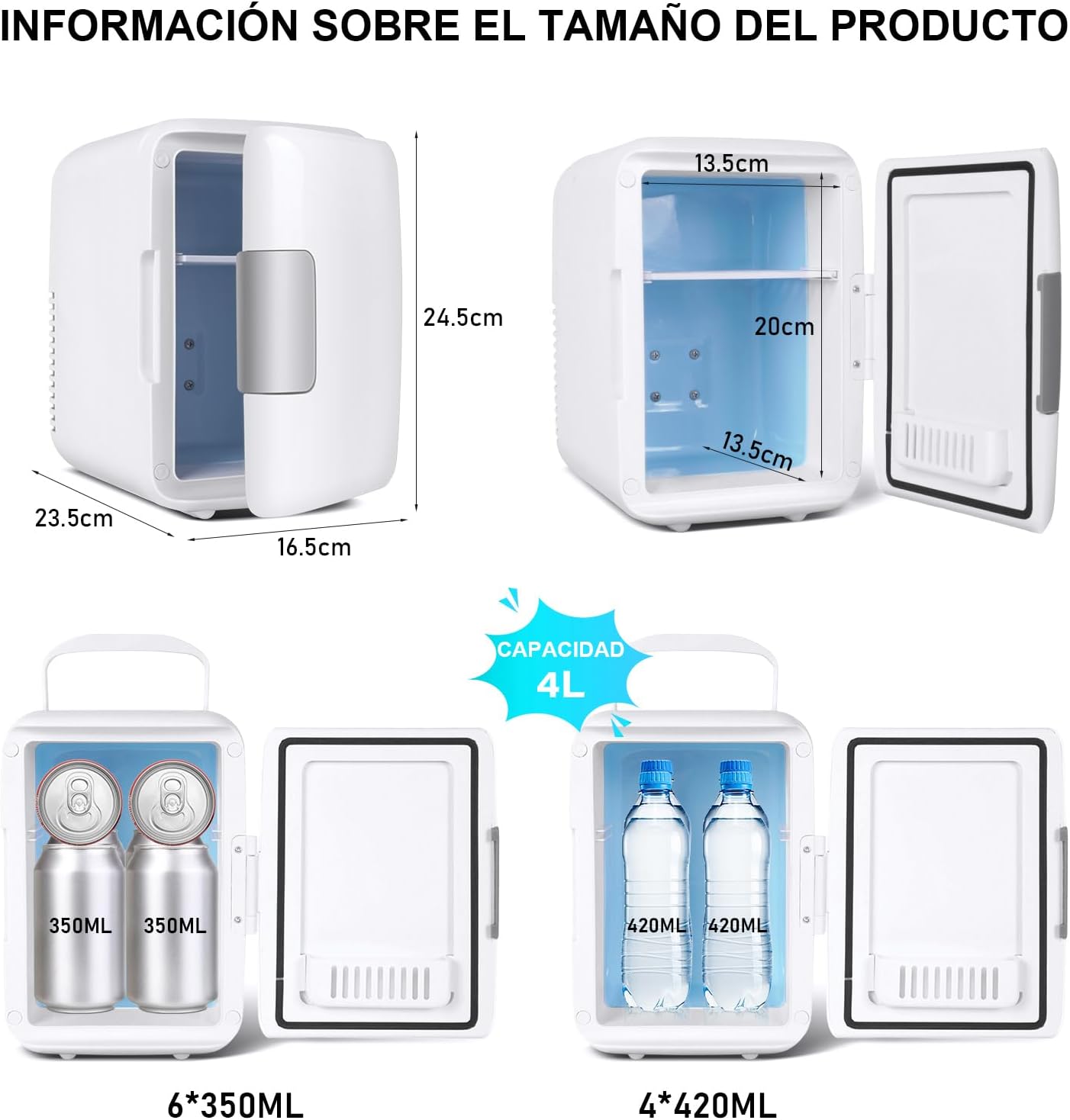 【Portátil】 Tamamo Compacto y fácil de Llevar. Con UNA Capacidad de 4 Litros y Dimensiones de 23 x 17.5 x 24 cm, Puede Almacenar Hasta 6 Latas de Refresco de 330 ml. Adecuado para el Hogar, la Oficina y El Coche