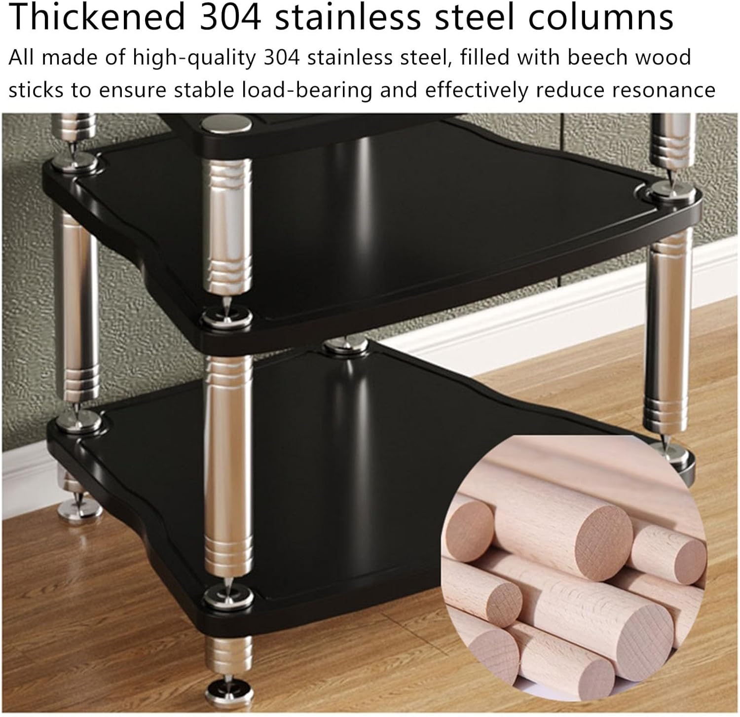 Presentamos Nuestro Estante de Equipo de Audio Resistente, Fabricado Por Expers Con acero inoxidable 304 Grueso. Este Estante Premium Cuenta Con Columna de Alta Calidad Diseñadas para una una Capacidad de Carga Excepcional, Asegurando que tu eopoque de audio esté apoyado de forma segura. Disfruta de la Tranquilidad Con una solución ESTABLE Y DURADERA PARA TUS NECESIDADES DE SISTEMA DE SONIDO, PERFECTA TANTO PARA Uso Profesional Como Domísico.
