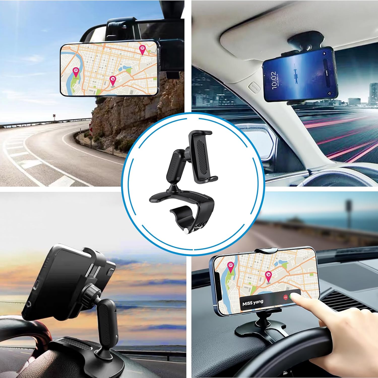 Opciones de montaje versátiles: este soporte para teléfono para automóvil permite diferentes ubicaciones de instalación, como el espejo retrovisor, el tablero, el parasol o incluso en escritorios. Ideally suited tanto para el coche como para el hogar o la oficina, proporciona la máxima flexibilidad