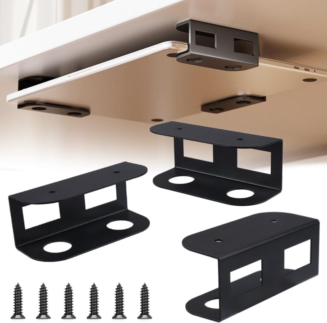 – Diseño antirrayas: Los bordes del soporte para computadora portátil debajo del escritorio están pulidos con cuidado, redondeados y lisos, evitando rayar las manos o los dispositivos durante el uso.