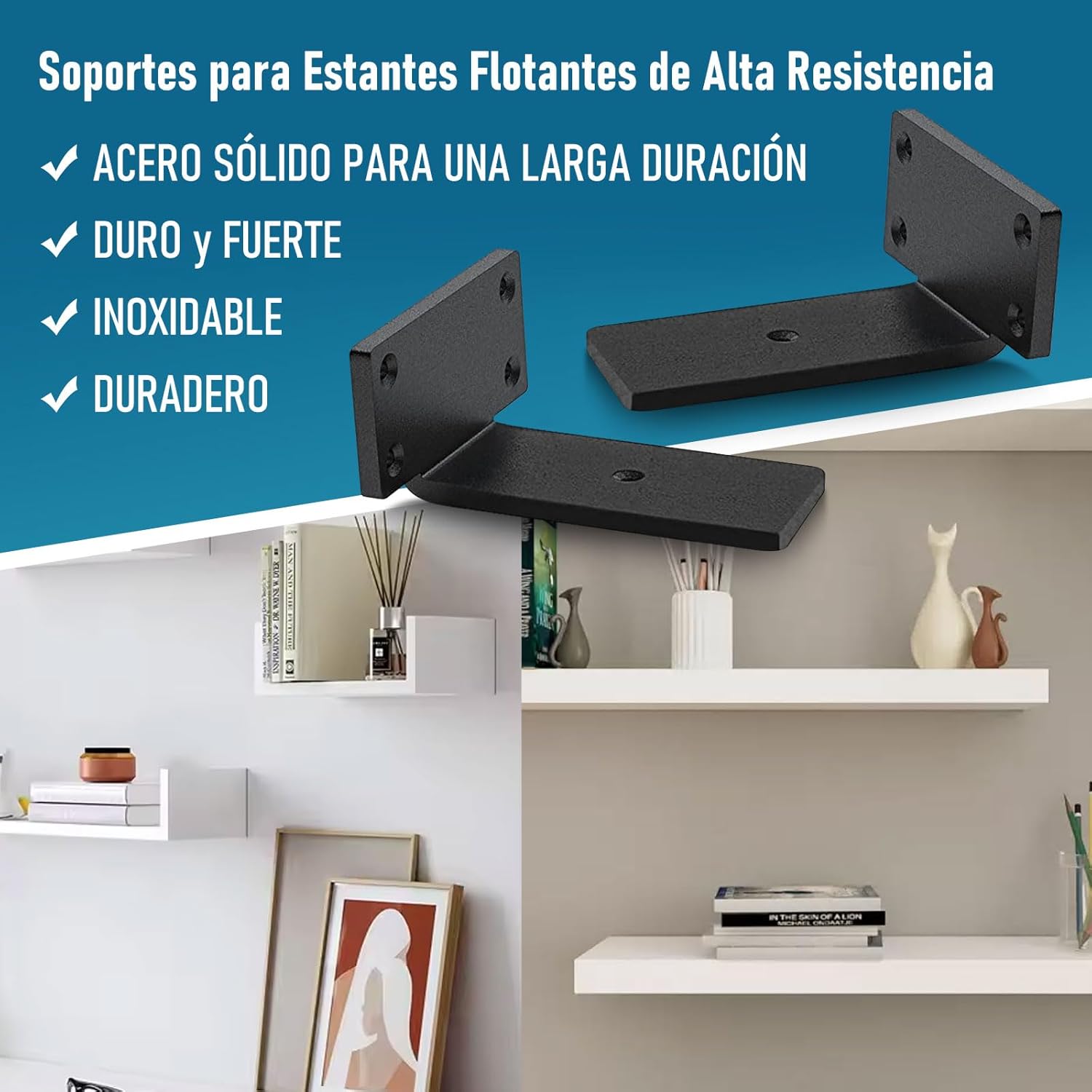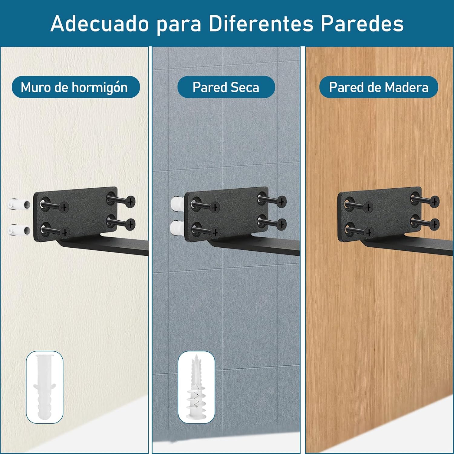 Fácil instalación: nuestros soportes para estanterías de alta resistencia están equipados con los accesorios de montaje para estantes flotantes necesarios para la instalación. Se incluyen 4 x soportes para estantes flotantes, 4 x tornillos cortos, 16 x tornillos largos, 16 x anclajes para paneles de yeso, 16 x anclajes para hormigón. No se requieren habilidades especiales para montar estos soportes en L de alta resistencia en la pared.