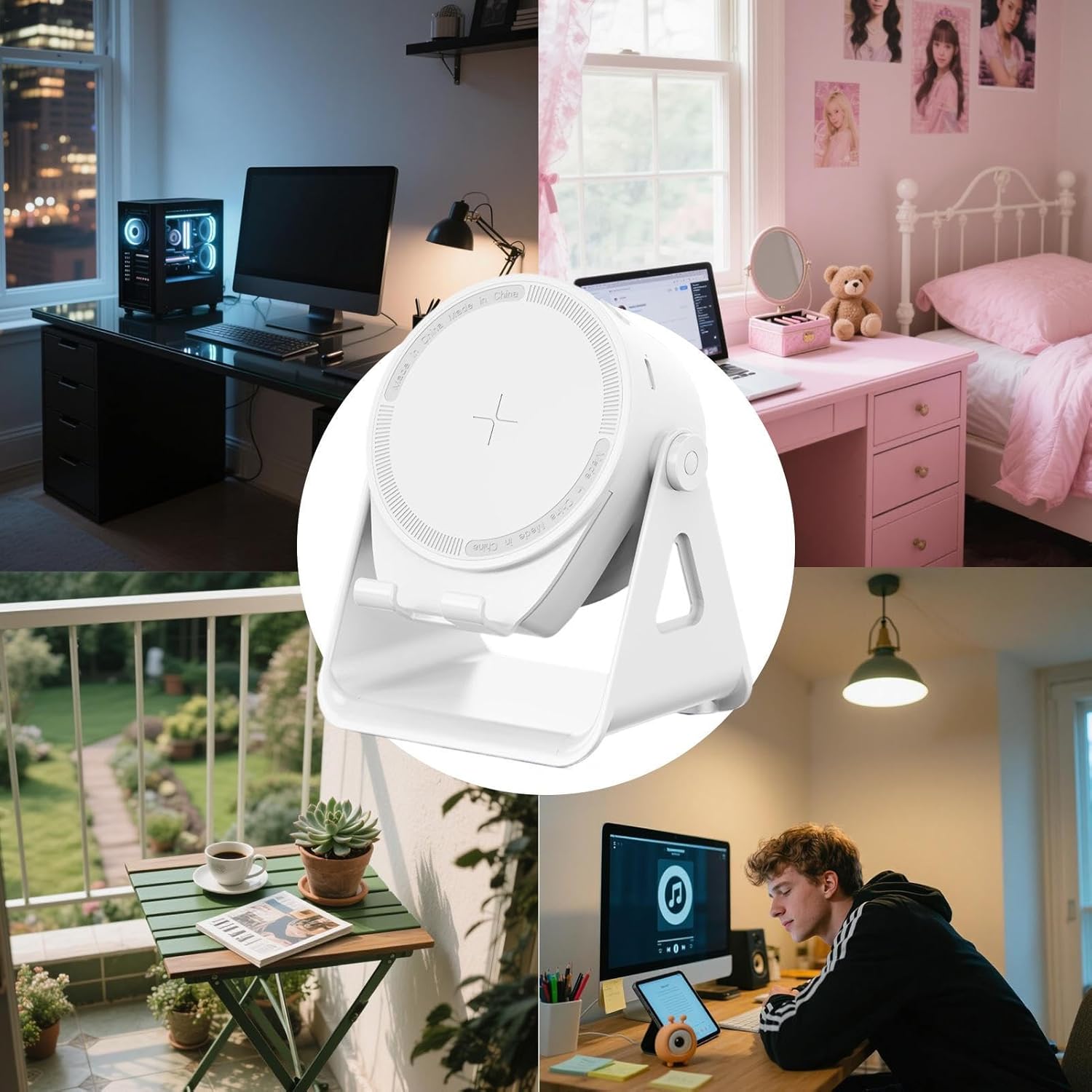 Experimente un audio perfecto con la interacción de detección inteligente y ajustable en su altavoz de inducción. Diseñado para ser versátil, proporciona una rotación de 360 grados para adaptarse a cualquier entorno, desde el hogar hasta el automóvil, el baño o los espacios al aire libre. Perfecto para viajes, mesas de noche, escritorios y duchas, este dispositivo electrónico se integra perfectamente en la vida cotidiana, brindando comodidad y funcionalidad donde más lo necesita.