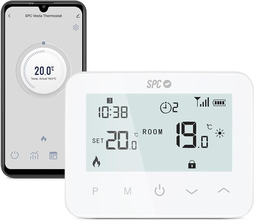 Un termostato Inteligente que Ahorra Energía – TENER UNA CALEFACION INTELIGENTE CONLLEVA SIempre Un Ahorro de Energía. Con Spc Vesta Thermostat se Puede Programar La Calefacción y Calentar el Hogar A UNA Temperatura Detetinada Por Día de la Semana, por Franjas Horarias Según la Rutina de Cada Hogar e incluso en Función de lasds Condiciones Meteorolóbicas. Para que no se se sean Pierda ni un solo Grado de temperatura y Mantener una temperatura constante.