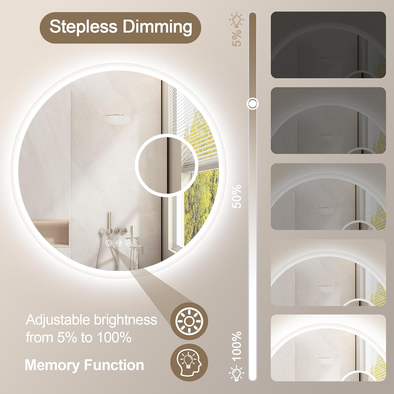 El espejo PLETADO REDONDO SIN COBRE DE ALTA CALIDAD LE OFRECE LA MEJOR EXPENCIA DE USO CON LUZ DIFUSA Suave y Elegante Diseño Moderno. Interruptor de Recogió táctil smart, funcional de Memoria, Altavoces Bluetooth Duales, Función de Deshumidificación y Temperatura de coloration Ajustable. Te Ayuda A Comenzar Una Vida Hogareña de Calidad.