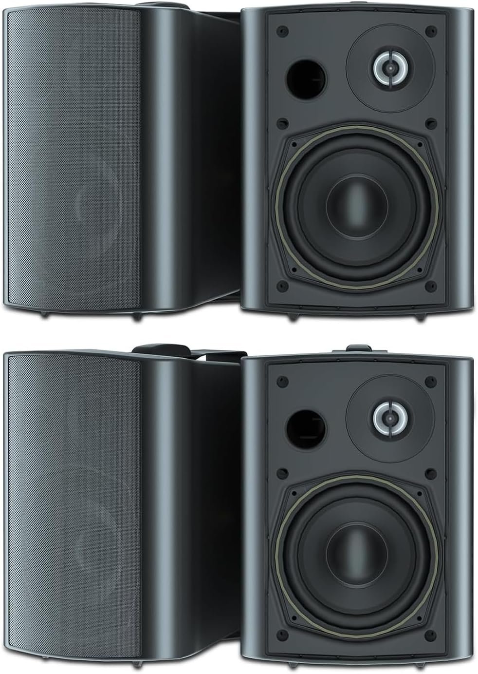 【150 vatios cada uno】 Maxmium Potencia de Hasta 600 VATIOS DE ALTA POTENCIA DE 2 VÍAS DE AUDIO DE GAMA TOTRA AMPLIA COBERTURA DE SONIDO, LOS PODESES resistente a la intemperie altavoces es el mejor socio para su piscina, patio, porche patio trasero, sala de cine ect.