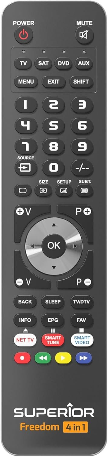 El Superior Freedom USB-C es el management remoto common programable perfecto para quienes buscan practicidad, innovación y compatibilidad sin compromisos. Gracias a sus numerosos bancos de memoria (uno, dos o cuatro) y la posibilidad de ser reprogramado infinitas veces, este management remoto nunca quedará obsoleto. La programación es fácil e intuitiva, y toma menos de un minuto: solo un doble clic en la marca y modelo del dispositivo. Con una base de datos líder en Europa que incluye más de 260.000 dispositivos compatibles, puedes controlar televisores, decodificadores, DVD, Blu-ray, proyectores, barras de sonido, centros multimedia, Hello-Fi y mucho más.