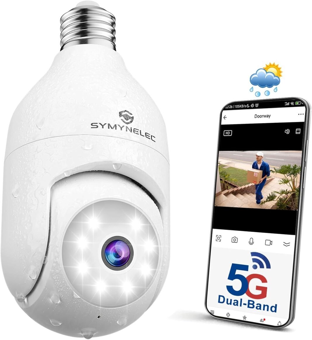 Symynelec 5Ghz/2.4ghz CámaLa de Bombilla Vigilancia Wifi Exterior 2K 4MP, Camara de Seguridad 360 ° Con SeguiMiento Humano AI, Visonón Nocturna A Coloration, Audio bidirecional, suitable Alexa, IP65