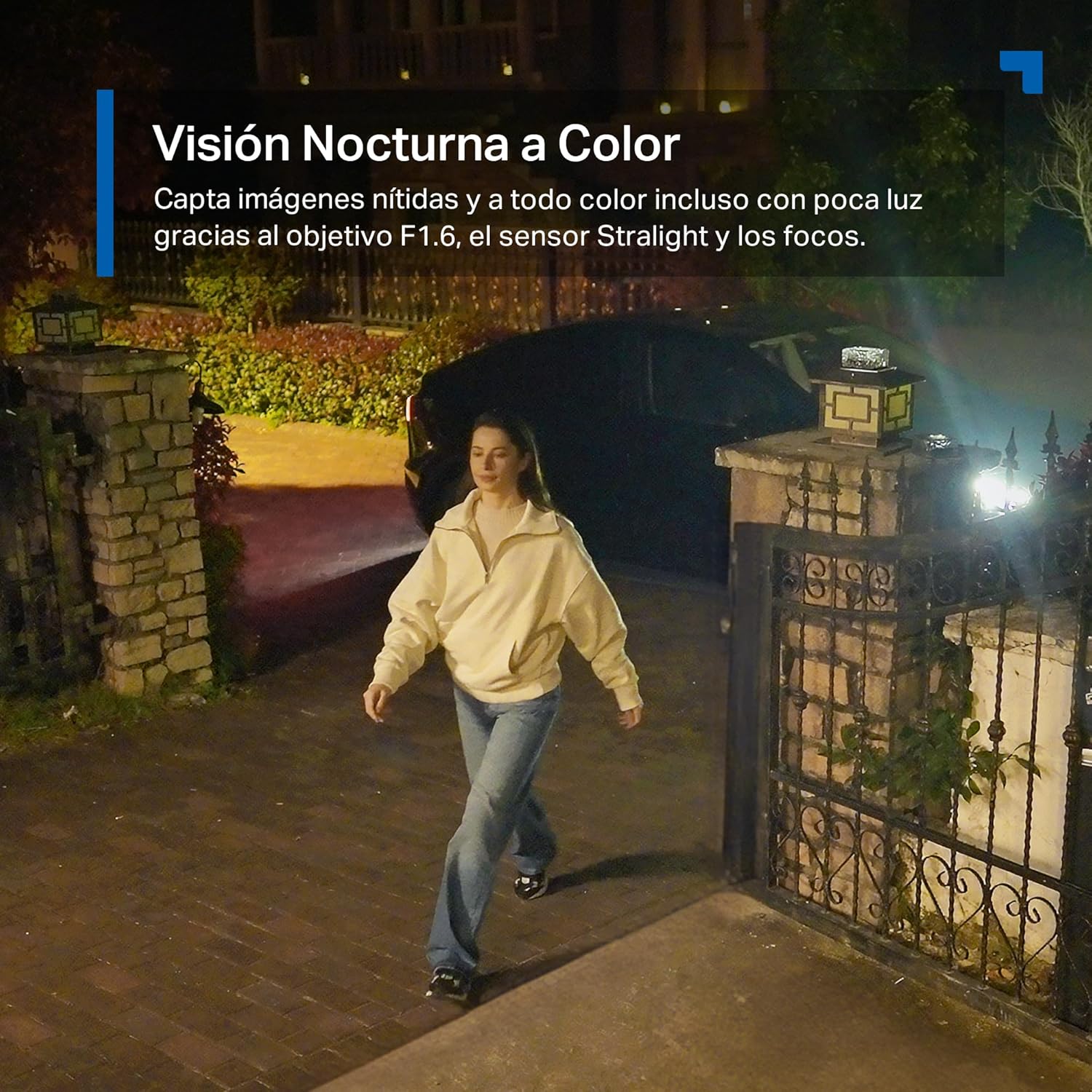 Visión nocturna en coloration Starlight: con la apertura F1.6, el sensor de imagen Starlight y la bombilla, la cámara ofrece imágenes en coloration nítidas incluso en condiciones de poca luz, lo que aumenta su seguridad nocturna.