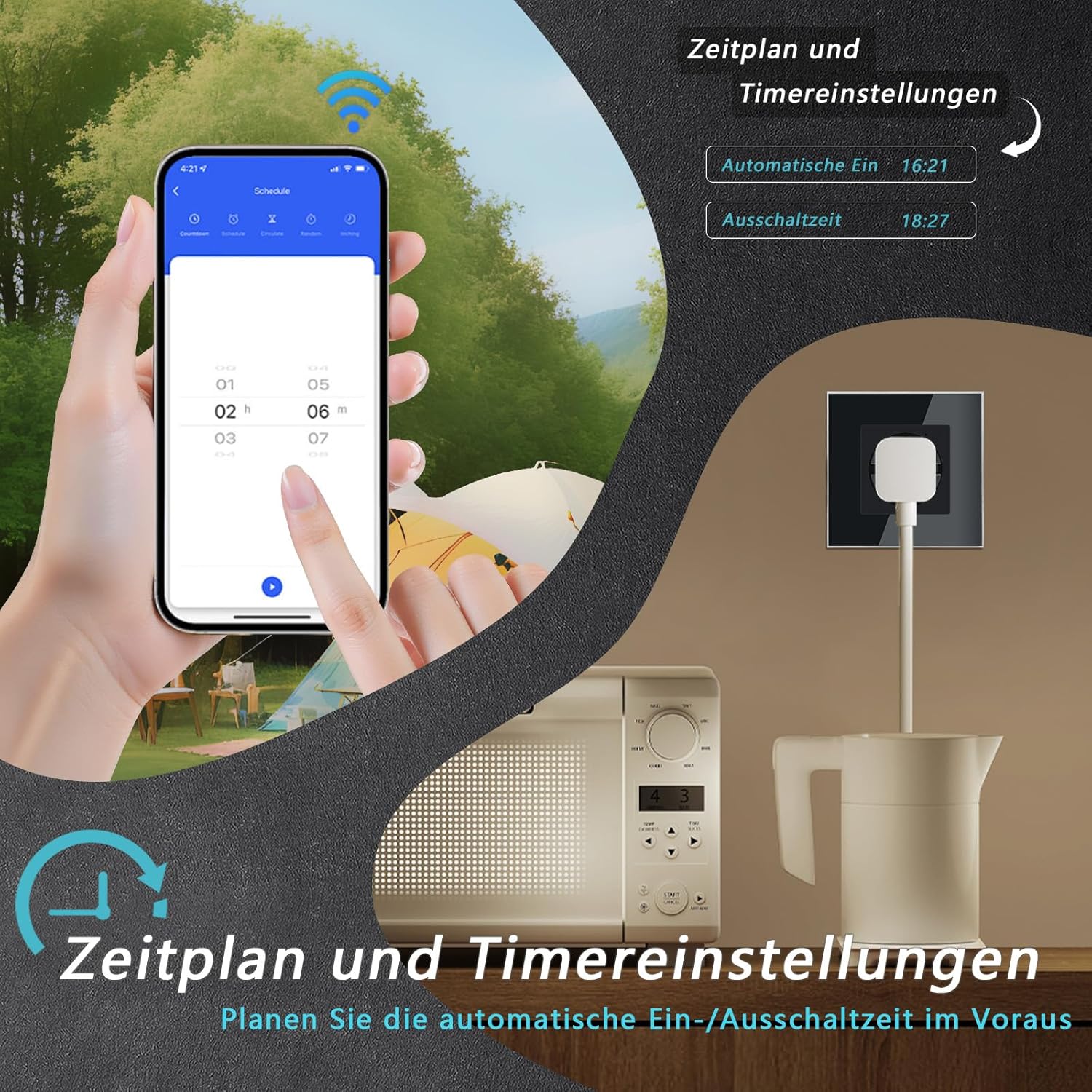 Función de sincronización: abra la aplicación Sensible Life o Tuya descargada desde el teléfono móvil, conéctela a la toma de corriente inteligente, y luego puede realizar la función de apagado y encendido a intervalos regulares.