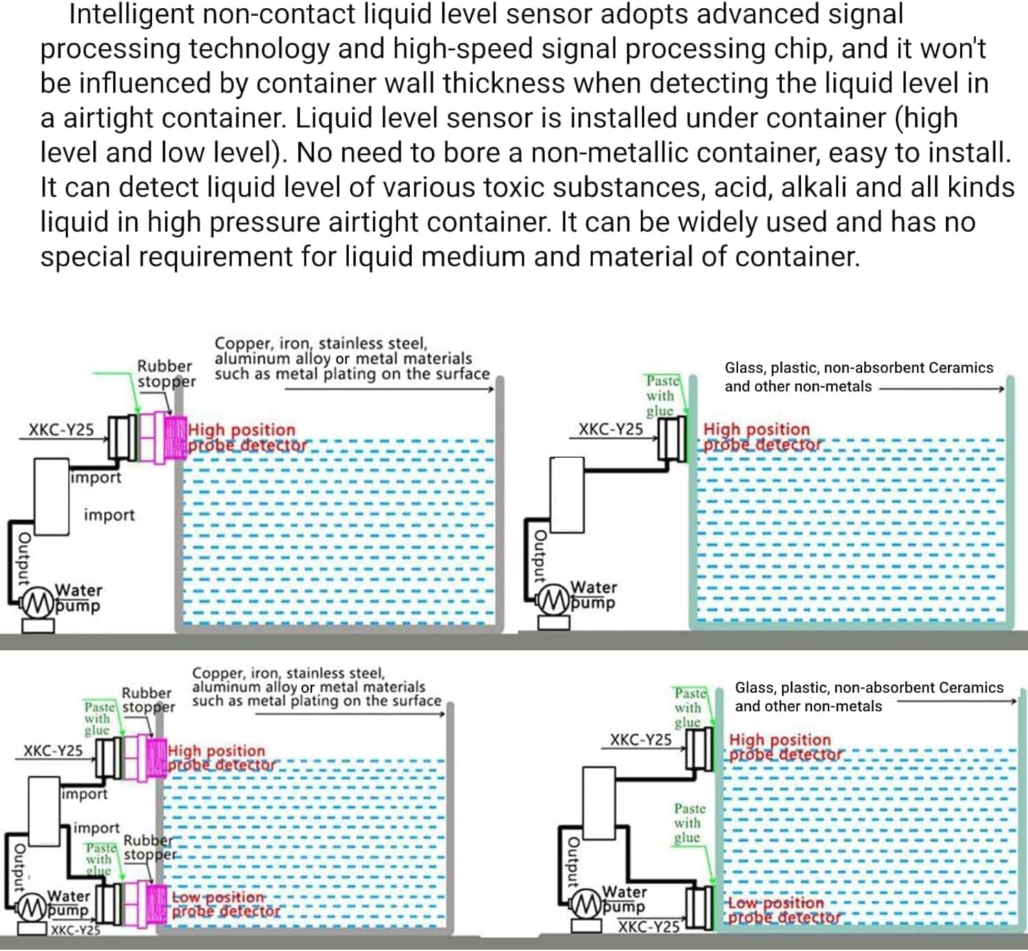 【Diseño Inteligente exquisito】 la configuración de referencia nivel líquido Estructura Circuito Electónico Pure, Modo Trabajo no Mecánnico, Larga Vida útil del XKC-Y25-NPN sensor nivel líquido.