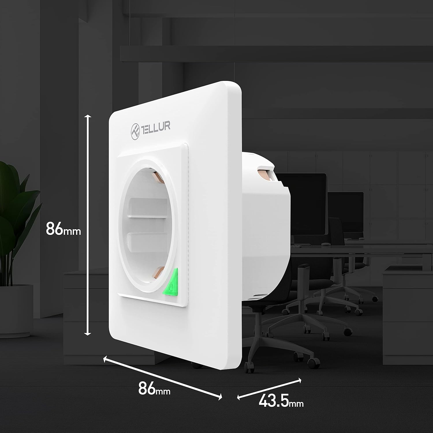 Potencia – Este Enchufe de Pared Conectado es para para Interiores Únicamme. Salida: Máximo 16 A y 3000 W, Voltaje: CA 100-230 V, Conteción Contra Sobrecargas.