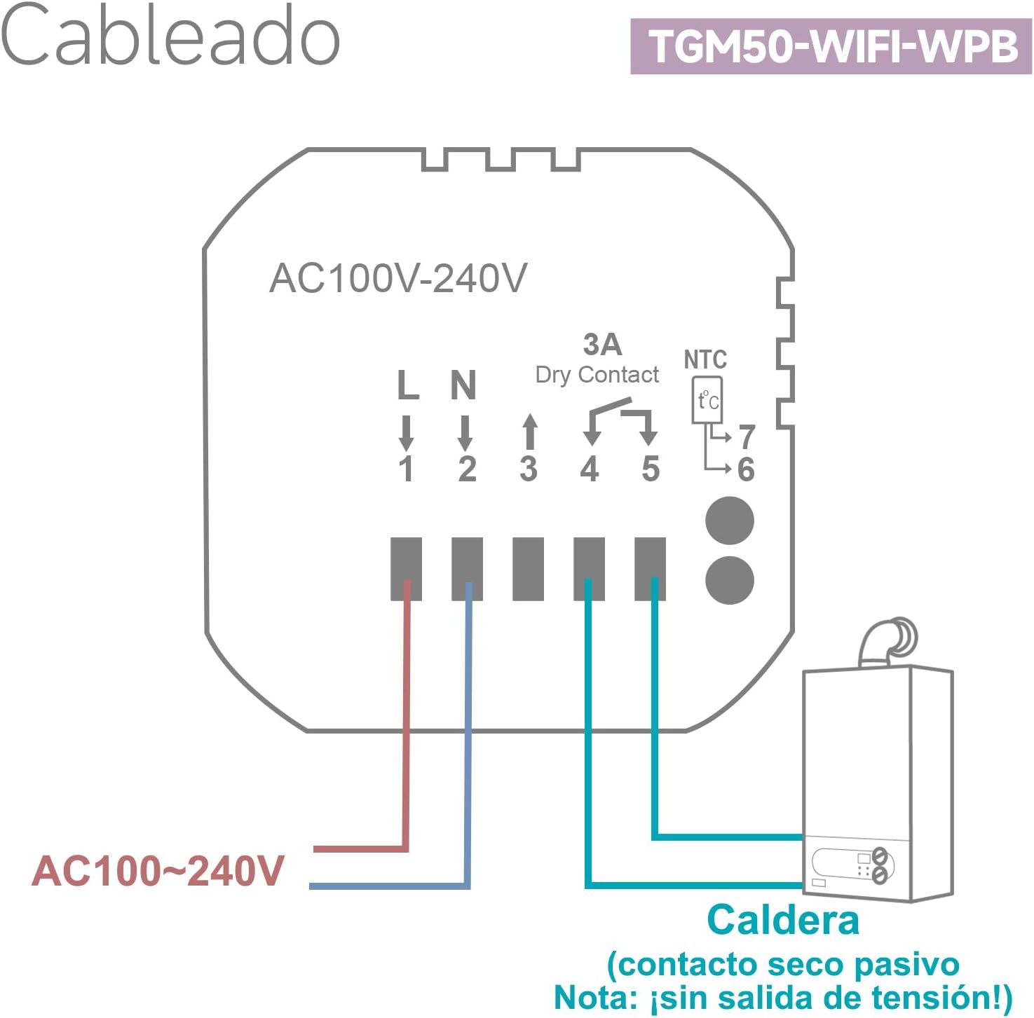 【Termostato WIFI】 Este termostato de calefacción funciona con la mayoría de las calderas con conexión de CONTACTO SECO de fuel, gasóleo o pellets. Compruebe el tipo de calefacción de su hogar antes de comprarlo. El termostato digital táctil sólo es suitable con WiFi 2.4Ghz.