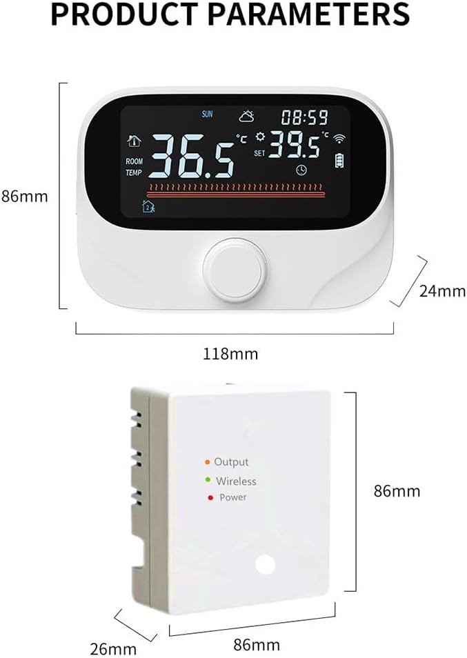 Programación y temporizador inteligentes: configure su termostato para ajustar automáticamente los períodos de calefacción según sus preferencias y rutina diaria. Esta característica no sólo garantiza que su hogar sea acogedor cuando lo necesite, sino que también maximiza la eficiencia energética al reducir la calefacción innecesaria.