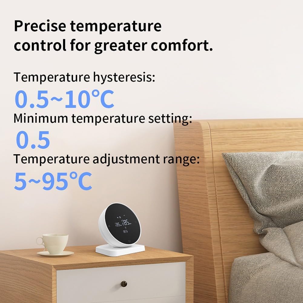 Management de Voz: El termostato programable de caldera montado en la pared puede experimentar la comodidad de la gestión de la temperatura del hogar con manos libres. Conplicaciones compatibles populares de management de Voz, lo que hace que las tareas diarias sean más suaves y eficientes.