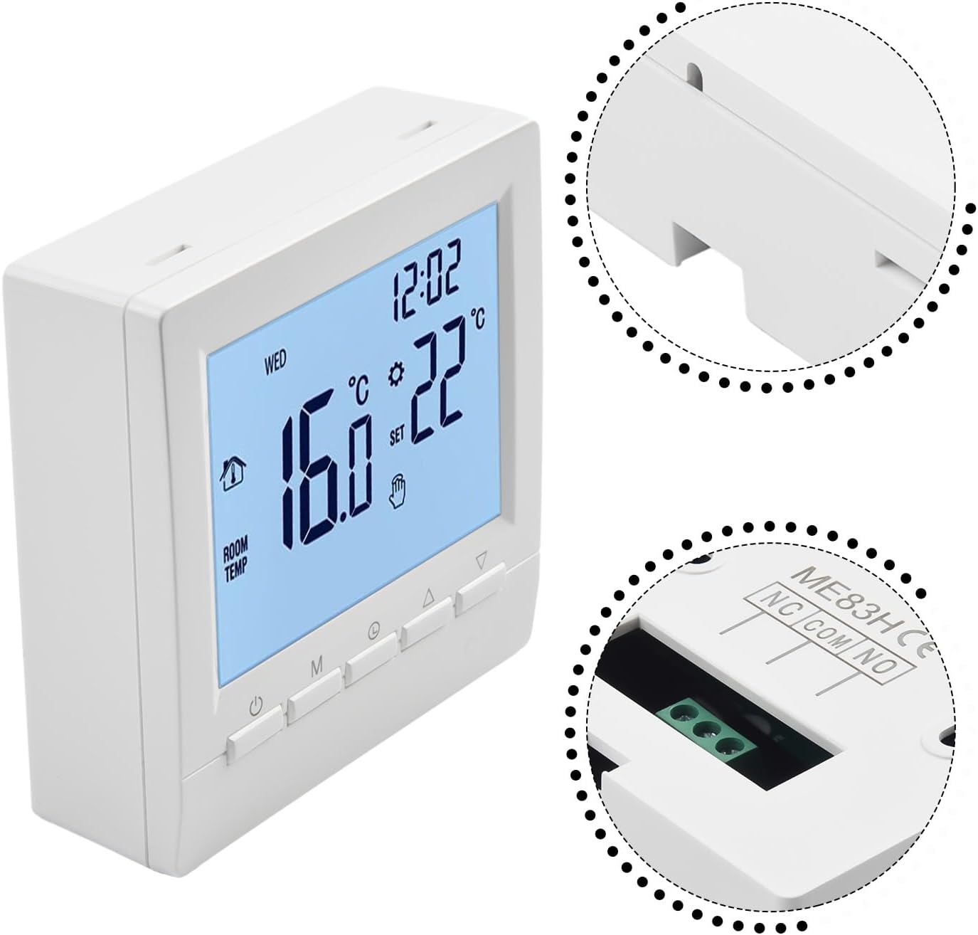 Termostato digital con pantalla LCD, controlador de temperatura no programable para caldera de fuel o calefacción por suelo radiante, funciona con pilas, bloqueo para niños, función