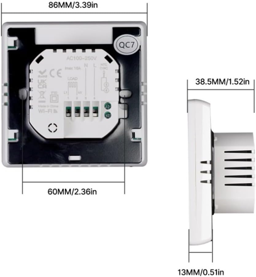 (Management WiFi inteligente): termostato eléctrico de calefacción por suelo radiante con conectividad WiFi integrada que permite ajustes remotos a través del smartphone, optimizando la comodidad antes de llegar a casa. Suitable con cables de calefacción de suelo, láminas de calefacción o radiadores de habitación, ofreciendo calidez constante con salida de potencia de 3600 W, corriente de 16 A y 220 V para configuraciones domésticas del Reino Unido. Las funciones de management inteligente permiten un funcionamiento perfecto desde cualquier lugar.
