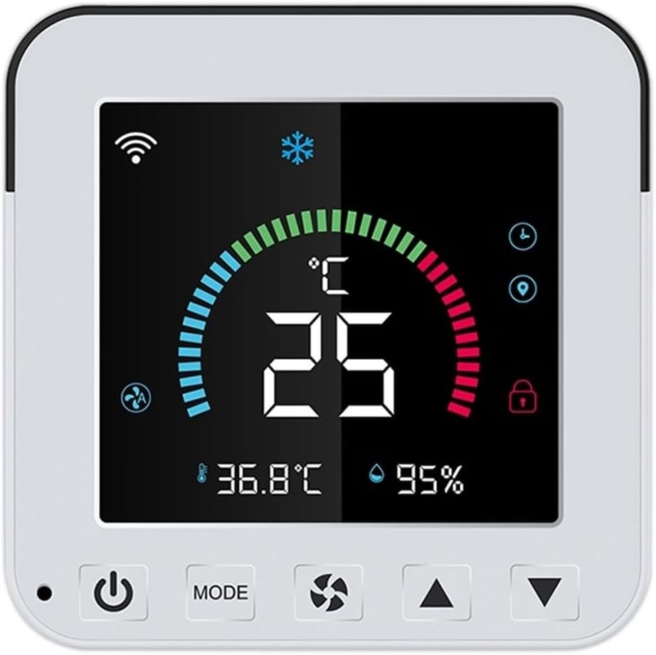 3. **PANTALLA TÁCTIL LCD FÁCIL DE USAR**: Con una pantalla táctil LCD USB intuitiva, el termostato WiFi facilita la configuración y el ajuste de su aire acondicionado de manera rápida y eficiente.