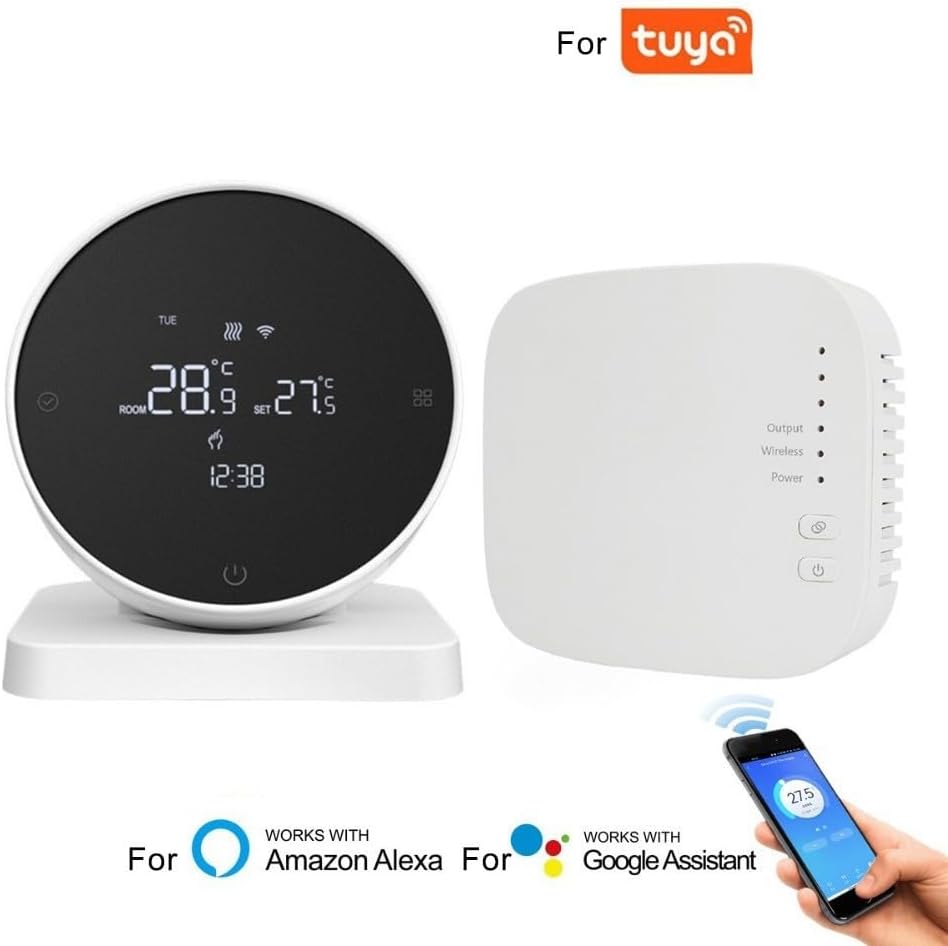 Termostato inteligente WiFi para calderas de agua a gasoline compatibles con Tuya RF433 Receptor inalámbrico APP Management remoto Programación multimodo 5+2/6+1/7 días (con WiFi)